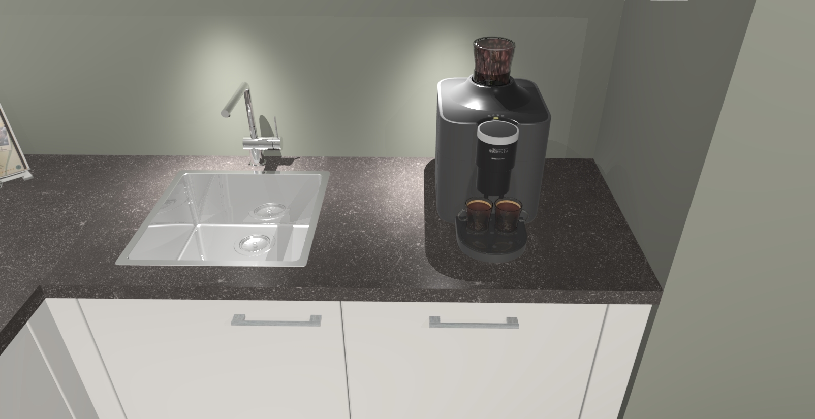 - De spoelbak is nog niet in gevreesd. Dit dient tijdens het werk gedaan te worden
