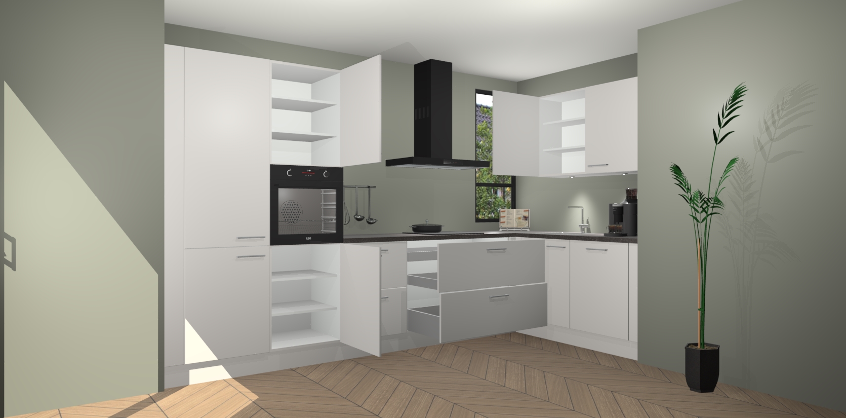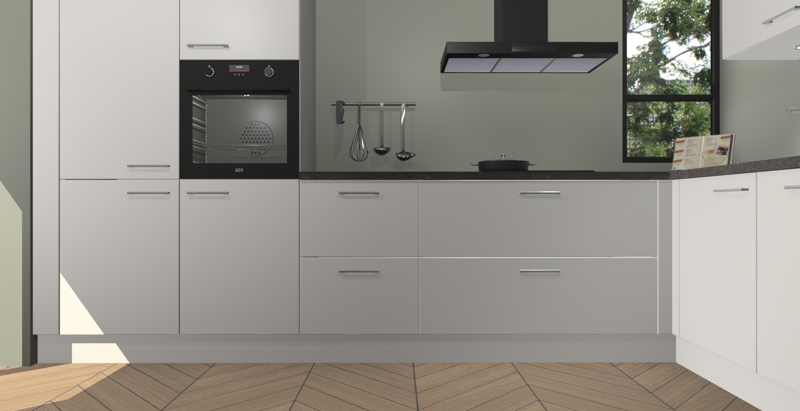Welkom in uw nieuwe moderne keuken! Laat ons u voorstellen aan de Zijdegrijze keuken Vlaanderen . Deze prachtige hoekkeuken straalt exclusiviteit en luxe uit als geen ander. Het strakke design, de tijdloze kleuren en het model maken van deze keuken een moderne klassieker. En met voldoende opbergruimte heeft deze keuken echt voor ieder wat wils.