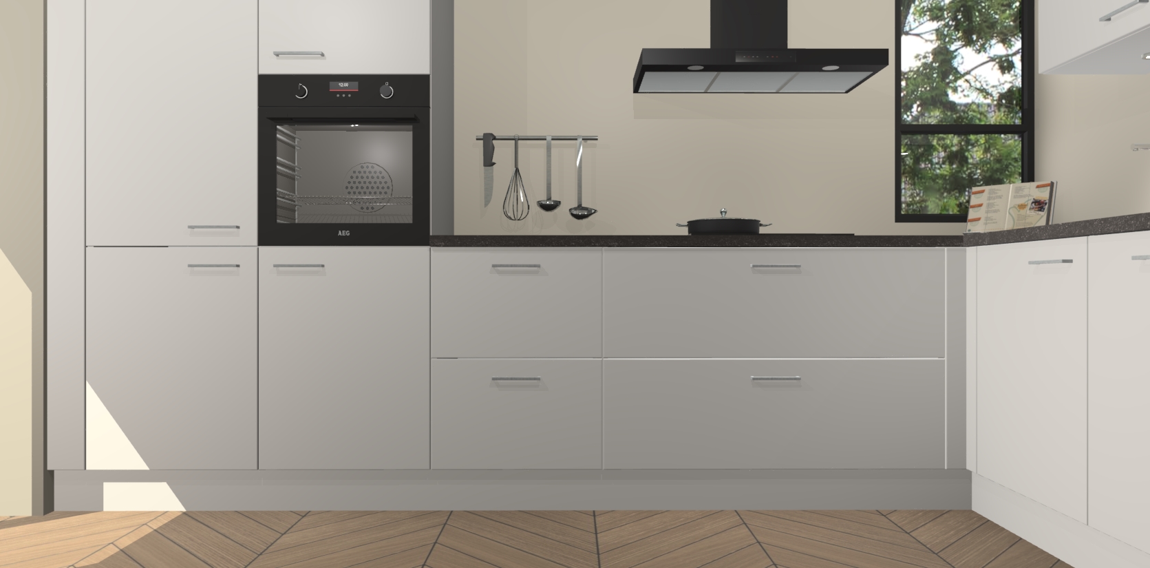 Welkom in uw nieuwe moderne keuken! Laat ons u voorstellen aan de Zijdegrijze keuken Vlaanderen . Deze prachtige hoekkeuken straalt exclusiviteit en luxe uit als geen ander. Het strakke design, de tijdloze kleuren en het model maken van deze keuken een moderne klassieker. En met voldoende opbergruimte heeft deze keuken echt voor ieder wat wils.