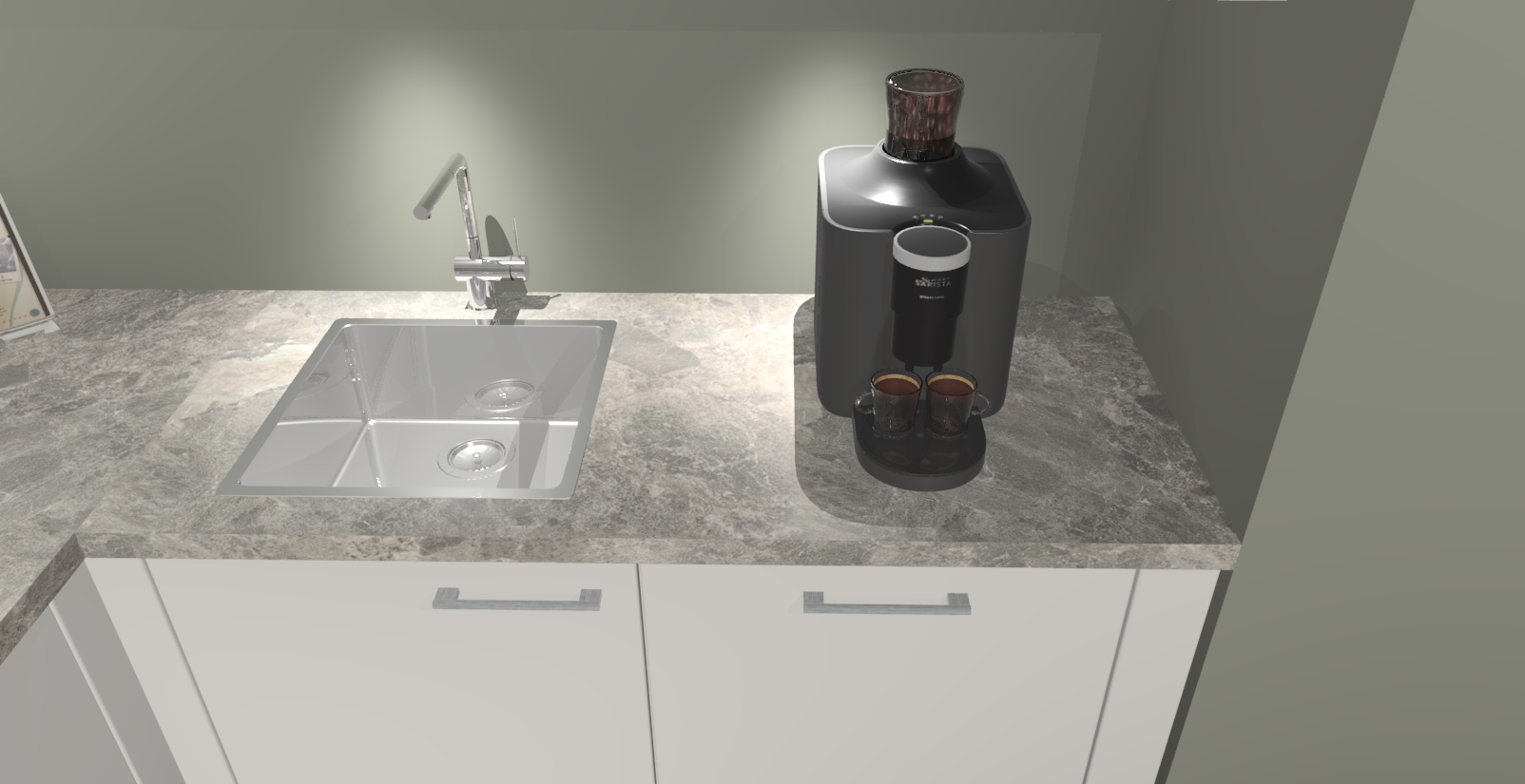 - De spoelbak is nog niet in gevreesd. Dit dient tijdens het werk gedaan te worden