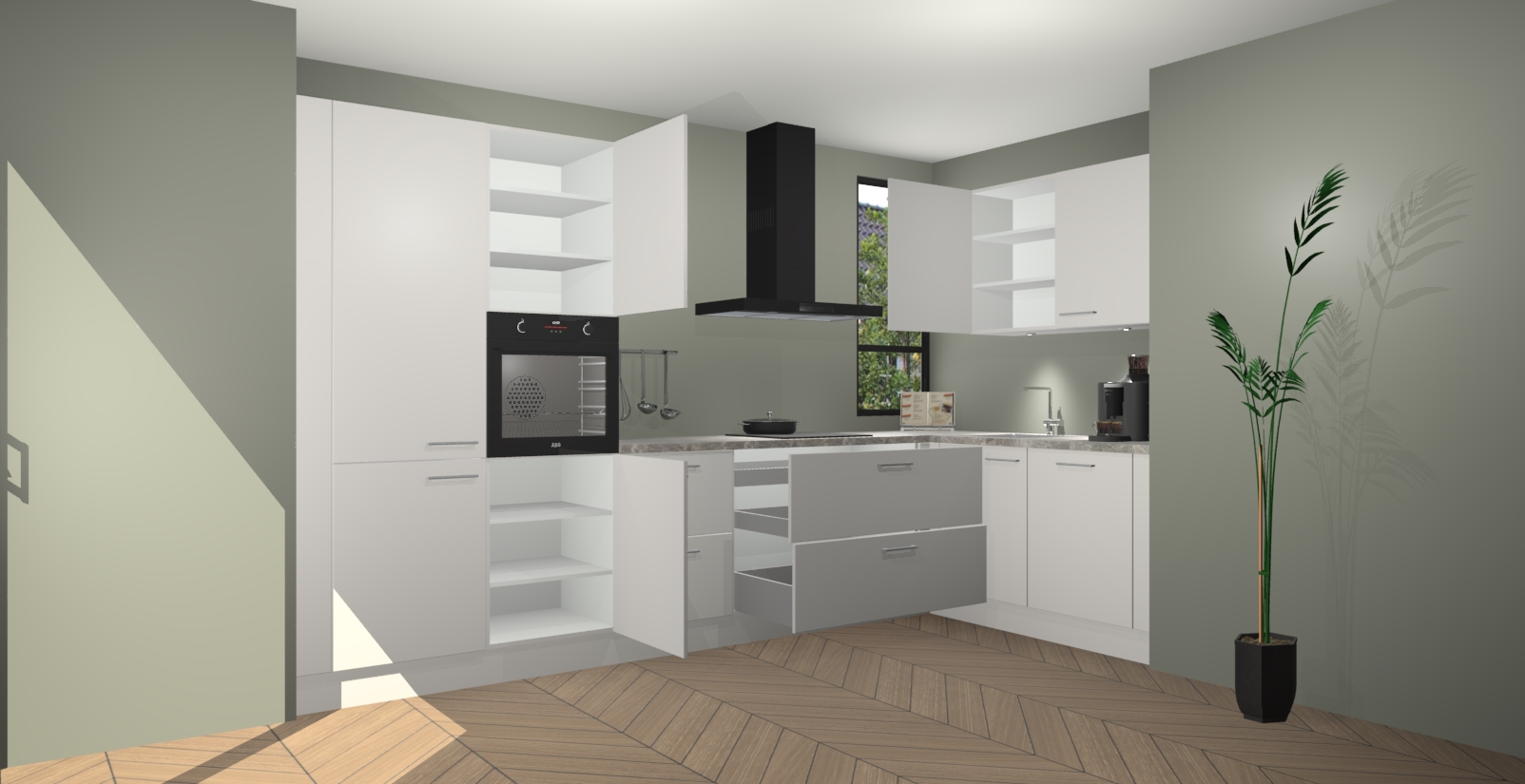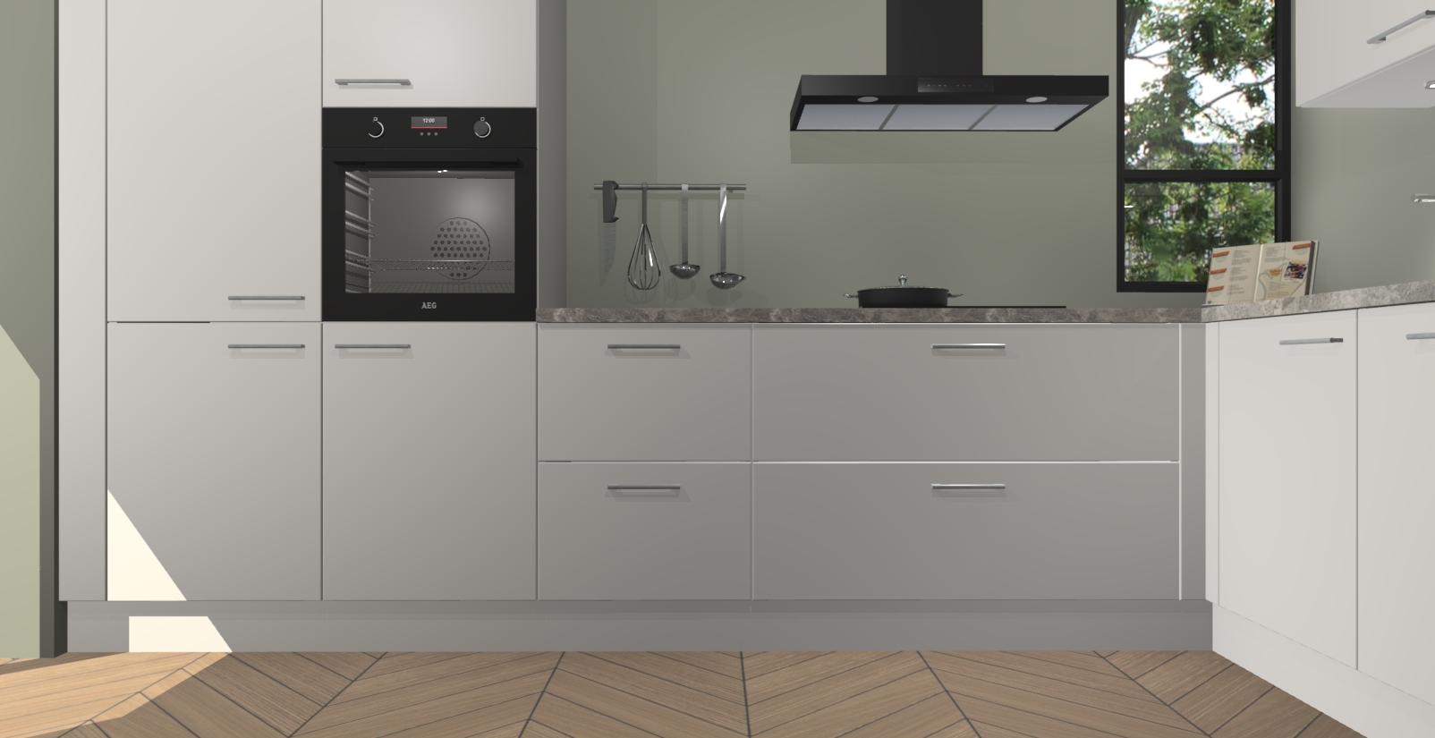 Welkom in uw nieuwe moderne keuken! Laat ons u voorstellen aan de Zijdegrijze keuken Vlaanderen . Deze prachtige hoekkeuken straalt exclusiviteit en luxe uit als geen ander. Het strakke design, de tijdloze kleuren en het model maken van deze keuken een moderne klassieker. En met voldoende opbergruimte heeft deze keuken echt voor ieder wat wils.