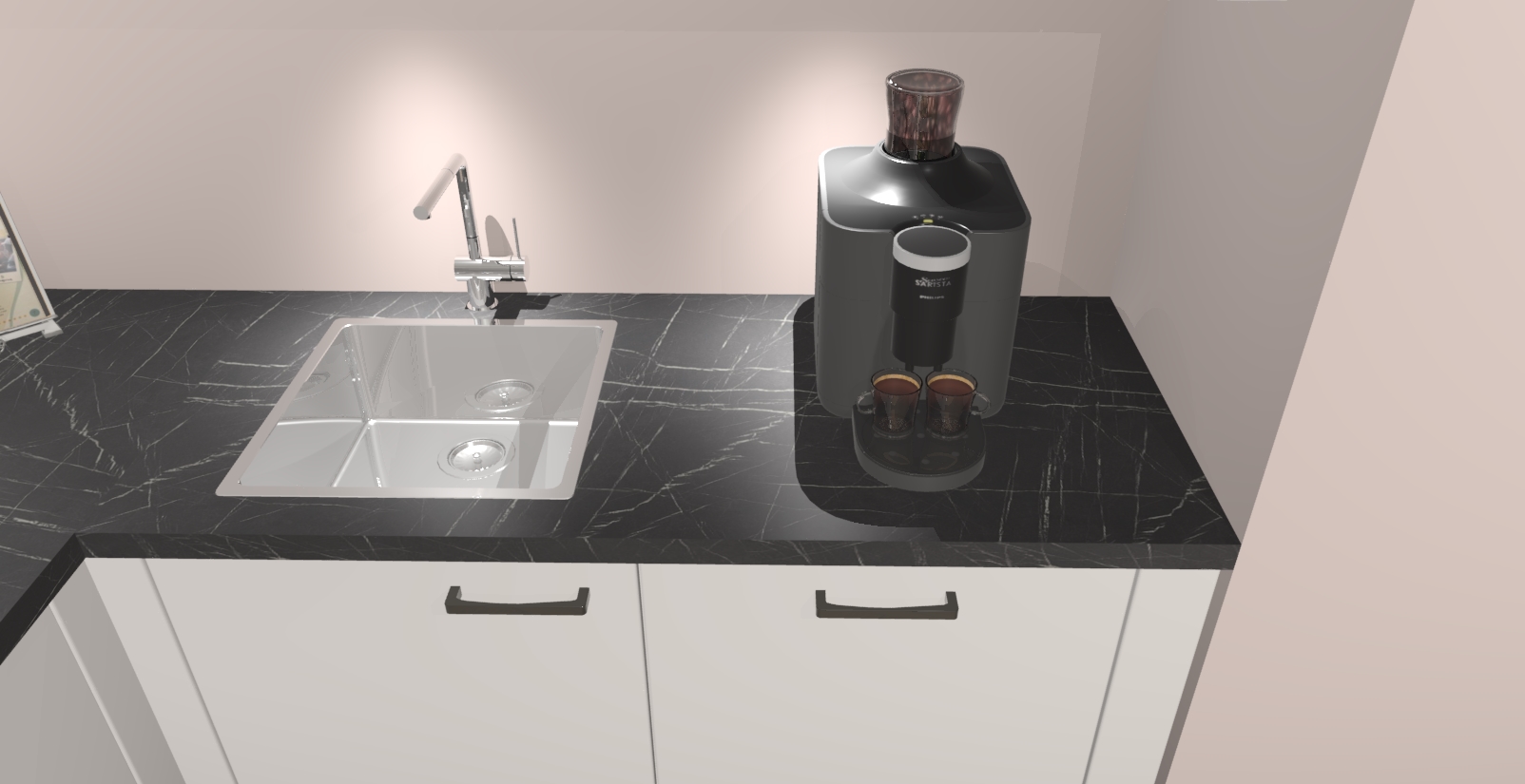 • De spoelbak is nog niet in gevreesd. Dit dient tijdens het werk gedaan te worden