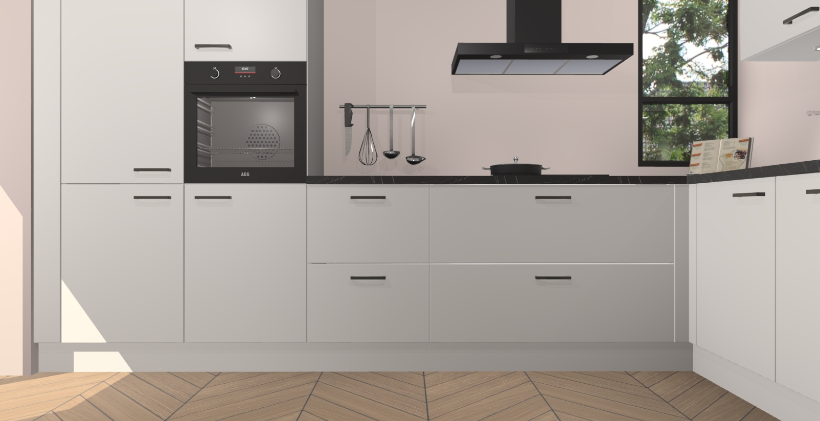 Welkom in uw nieuwe moderne keuken! Laat ons u voorstellen aan de Zijdegrijze keuken Vlaanderen . Deze prachtige hoekkeuken straalt exclusiviteit en luxe uit als geen ander. Het strakke design, de tijdloze kleuren en het model maken van deze keuken een moderne klassieker. En met voldoende opbergruimte heeft deze keuken echt voor ieder wat wils.