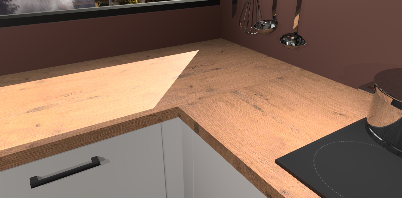- Bij een hoekwerkblad zijn de hoeken in gevreesd en op maat gemaakt