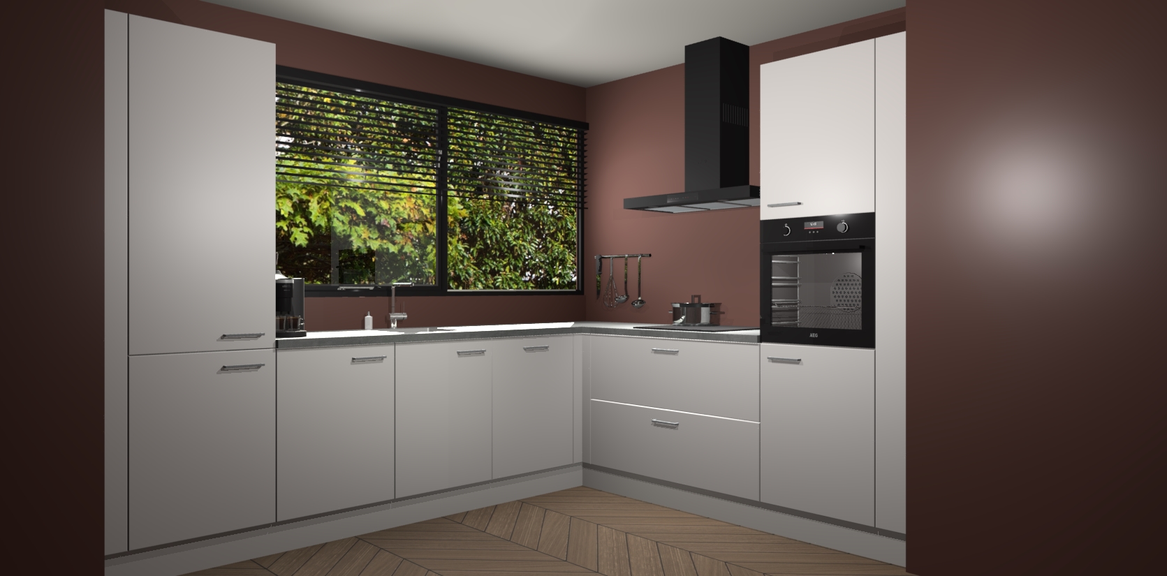 Met een modern, tijdloos design en ruime opslagruimte, zult u zich in no-time thuis voelen in uw nieuwe keuken. Uw leven wordt eenvoudiger met de soft-close deuren die voor het ultieme stille comfort zorgen - geen geluid dat u stoort terwijl u kookt. Ook is de keuken voorzien van 5 ingebouwde apparaten: een oven, inductie kookplaat, afzuigkap, vaatwasser en koelkast. Deze kunnen gemakkelijk na bestelling worden bijgewerkt naar AEG - waardoor uw luxe ervaring compleet is.