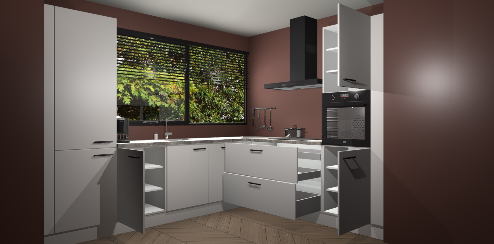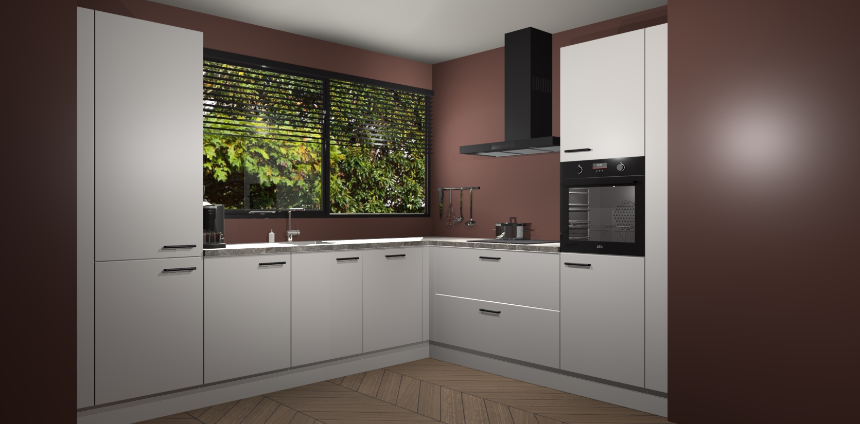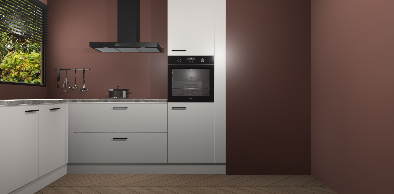 Met een modern, tijdloos design en ruime opslagruimte, zult u zich in no-time thuis voelen in uw nieuwe keuken. Uw leven wordt eenvoudiger met de soft-close deuren die voor het ultieme stille comfort zorgen - geen geluid dat u stoort terwijl u kookt. Ook is de keuken voorzien van 5 ingebouwde apparaten: een oven, inductie kookplaat, afzuigkap, vaatwasser en koelkast. Deze kunnen gemakkelijk na bestelling worden bijgewerkt naar AEG - waardoor uw luxe ervaring compleet is.