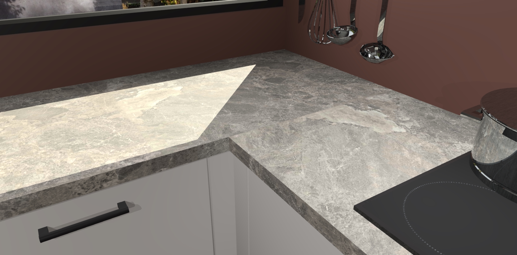- Bij een hoekwerkblad zijn de hoeken in gevreesd en op maat gemaakt