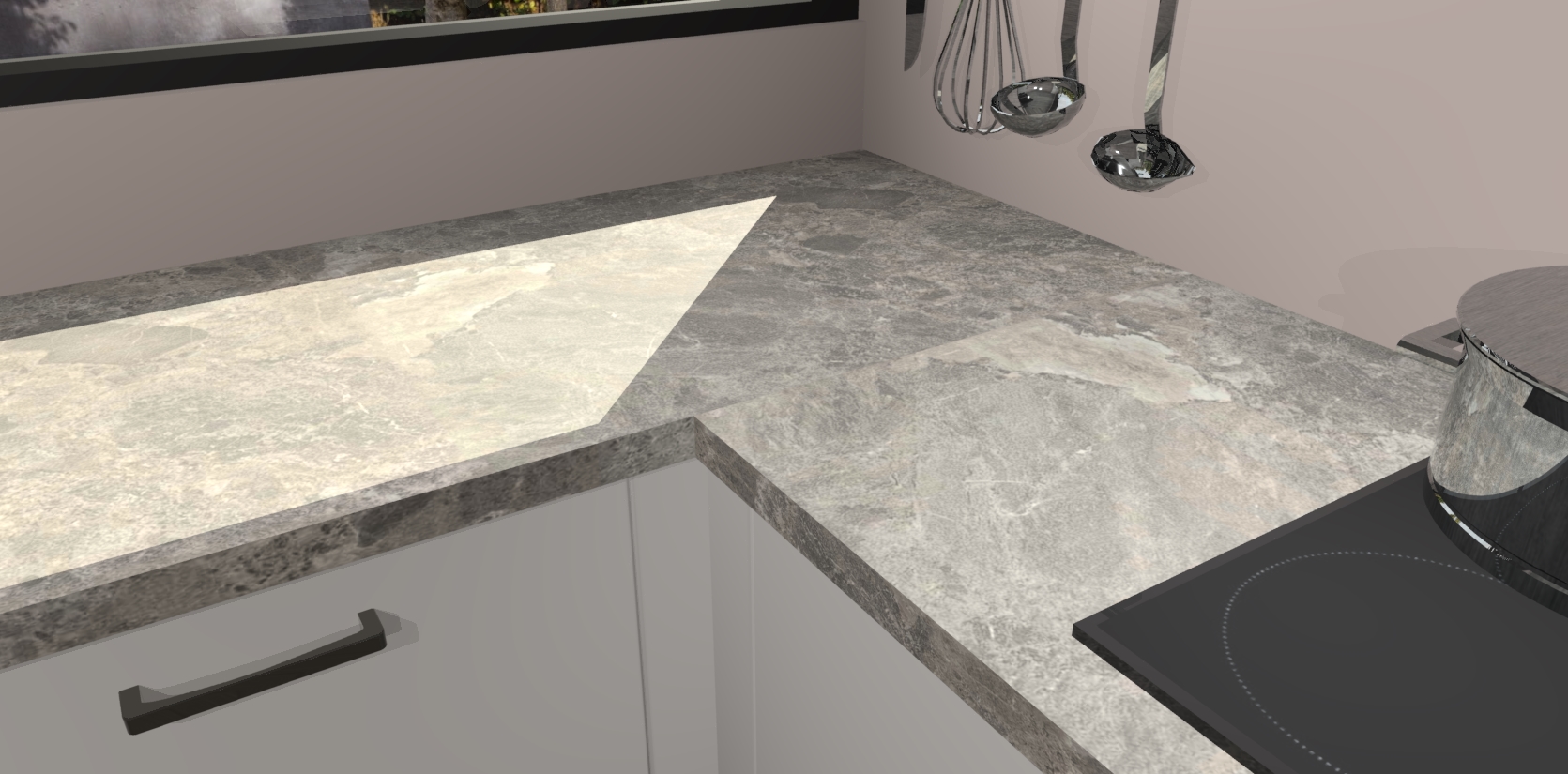 - Bij een hoekwerkblad zijn de hoeken in gevreesd en op maat gemaakt
