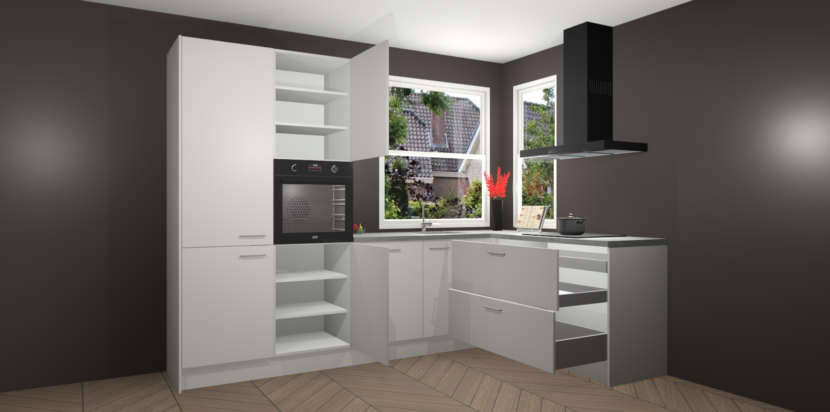 Het is tijd om halsoverkop verliefd te worden op uw droomkeuken, en de Zijdegrijze keuken Kotor is precies wat u nodig heeft! Met een moderne, tijdloze constructie en een mix van prachtig design zal deze luxe hoekkeuken zeker opvallen. Maar laat de schoonheid u niet afleiden van de indrukwekkende functies - want onder dit alles schuilt een onovertroffen hoeveelheid lekkers!