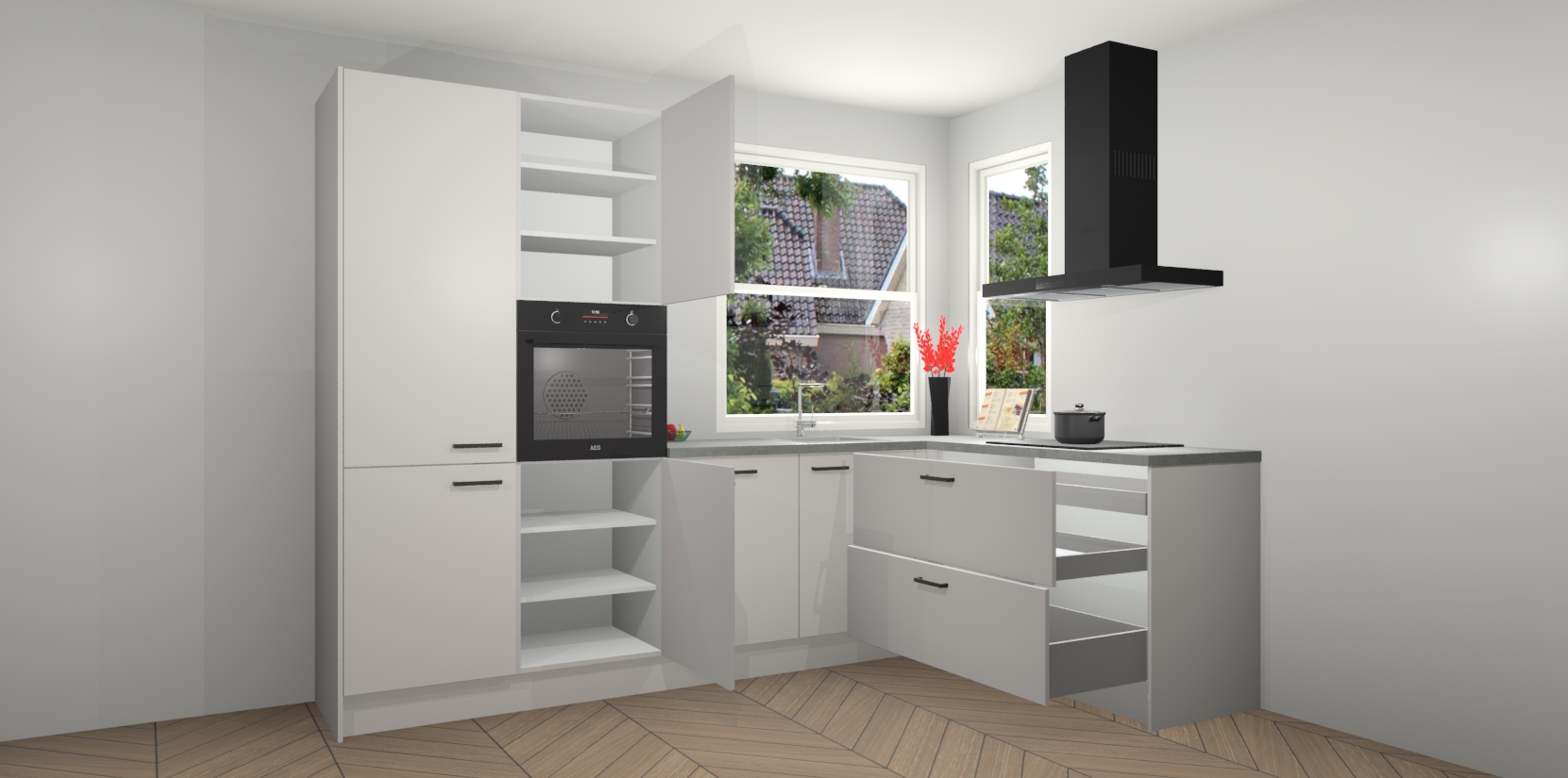 Het is tijd om halsoverkop verliefd te worden op uw droomkeuken, en de Zijdegrijze keuken Kotor is precies wat u nodig heeft! Met een moderne, tijdloze constructie en een mix van prachtig design zal deze luxe hoekkeuken zeker opvallen. Maar laat de schoonheid u niet afleiden van de indrukwekkende functies - want onder dit alles schuilt een onovertroffen hoeveelheid lekkers!