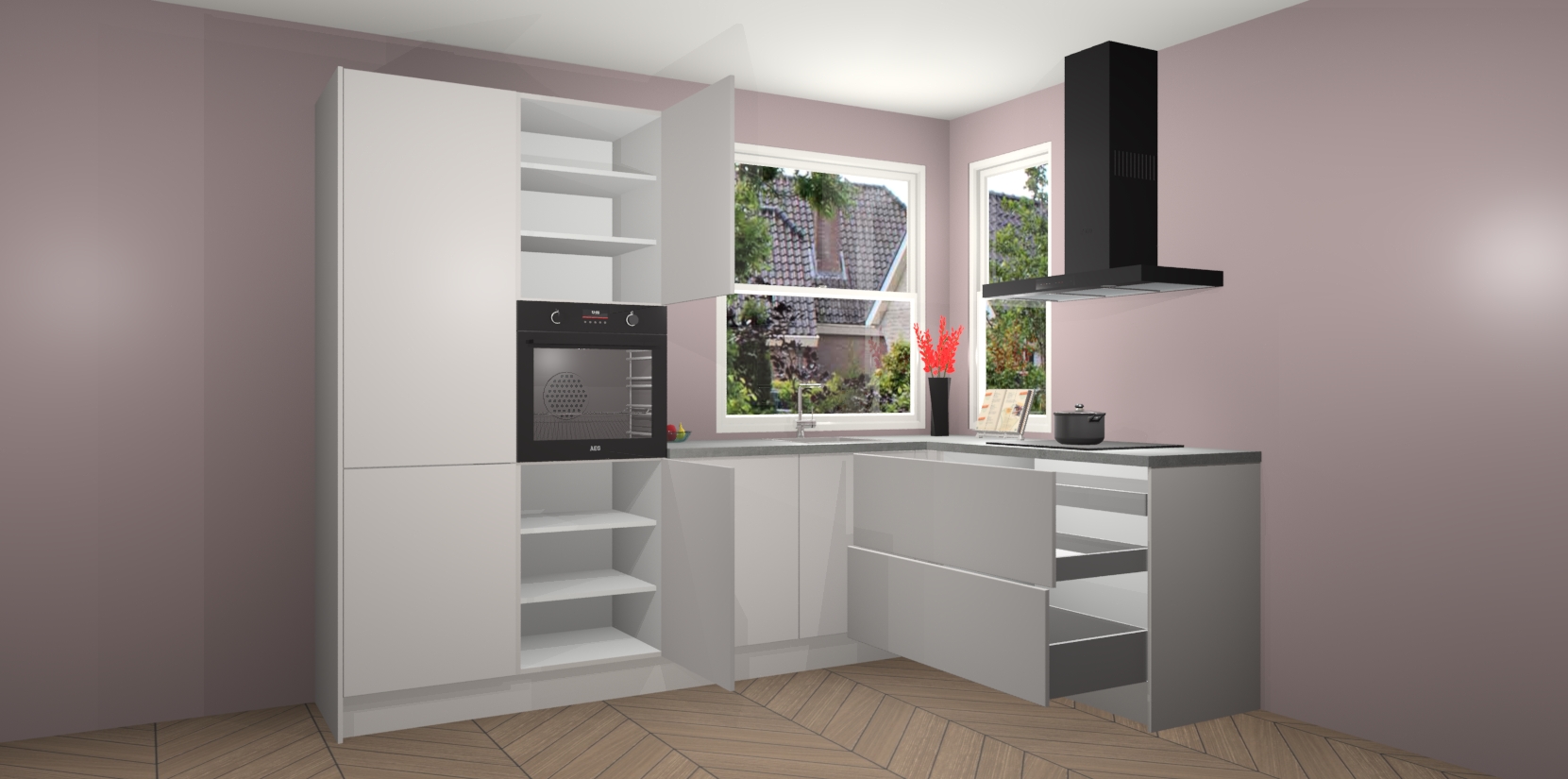 Het is tijd om halsoverkop verliefd te worden op uw droomkeuken, en de Zijdegrijze keuken Kotor is precies wat u nodig heeft! Met een moderne, tijdloze constructie en een mix van prachtig design zal deze luxe hoekkeuken zeker opvallen. Maar laat de schoonheid u niet afleiden van de indrukwekkende functies - want onder dit alles schuilt een onovertroffen hoeveelheid lekkers!