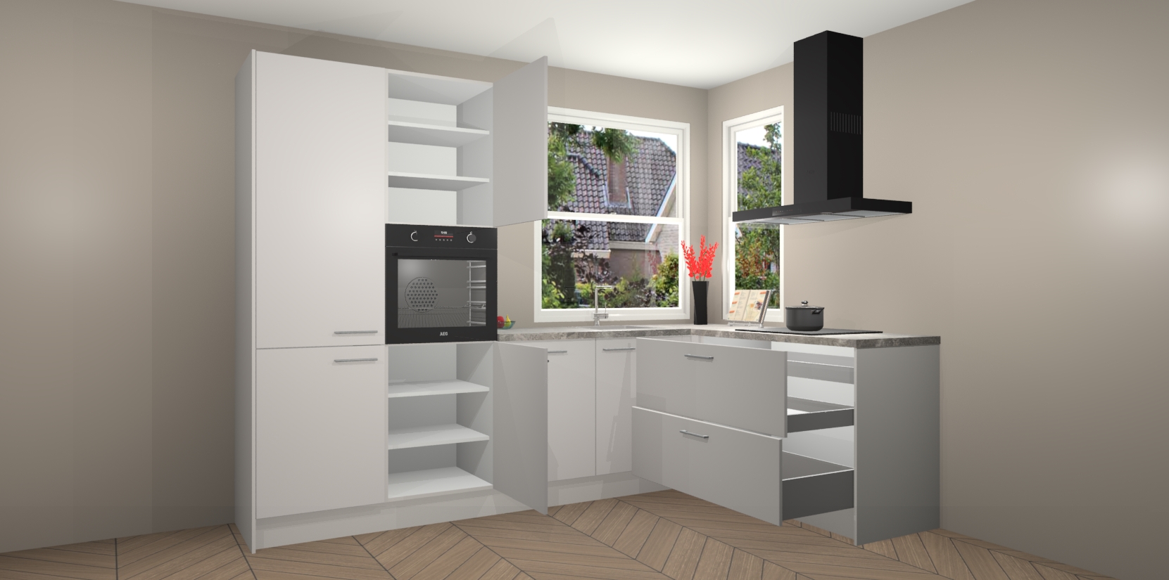 Het is tijd om halsoverkop verliefd te worden op uw droomkeuken, en de Zijdegrijze keuken Kotor is precies wat u nodig heeft! Met een moderne, tijdloze constructie en een mix van prachtig design zal deze luxe hoekkeuken zeker opvallen. Maar laat de schoonheid u niet afleiden van de indrukwekkende functies - want onder dit alles schuilt een onovertroffen hoeveelheid lekkers!