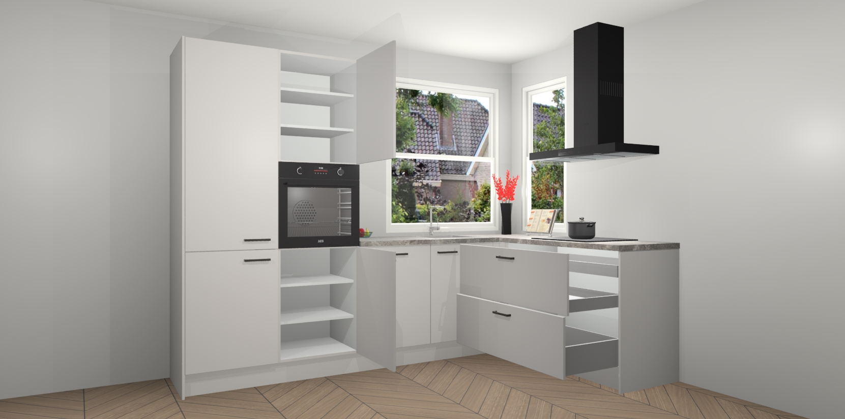 Het is tijd om halsoverkop verliefd te worden op uw droomkeuken, en de Zijdegrijze keuken Kotor is precies wat u nodig heeft! Met een moderne, tijdloze constructie en een mix van prachtig design zal deze luxe hoekkeuken zeker opvallen. Maar laat de schoonheid u niet afleiden van de indrukwekkende functies - want onder dit alles schuilt een onovertroffen hoeveelheid lekkers!