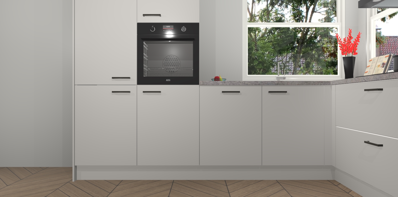 Elke Zijdegrijze keuken Kotor wordt compleet geleverd met vijf inbouwapparaten, waaronder een oven, inductiekookplaat, afzuigkap, vaatwasser en koelkast. Sterker nog - indien gewenst kunt u deze apparaten na bestelling eenvoudig upgraden naar AEG! Extra functies zijn onder andere soft close deuren voor extra gemak, en elke kast wordt voor gemonteerd geleverd zodat u sneller van uw nieuwe keuken kunt genieten.