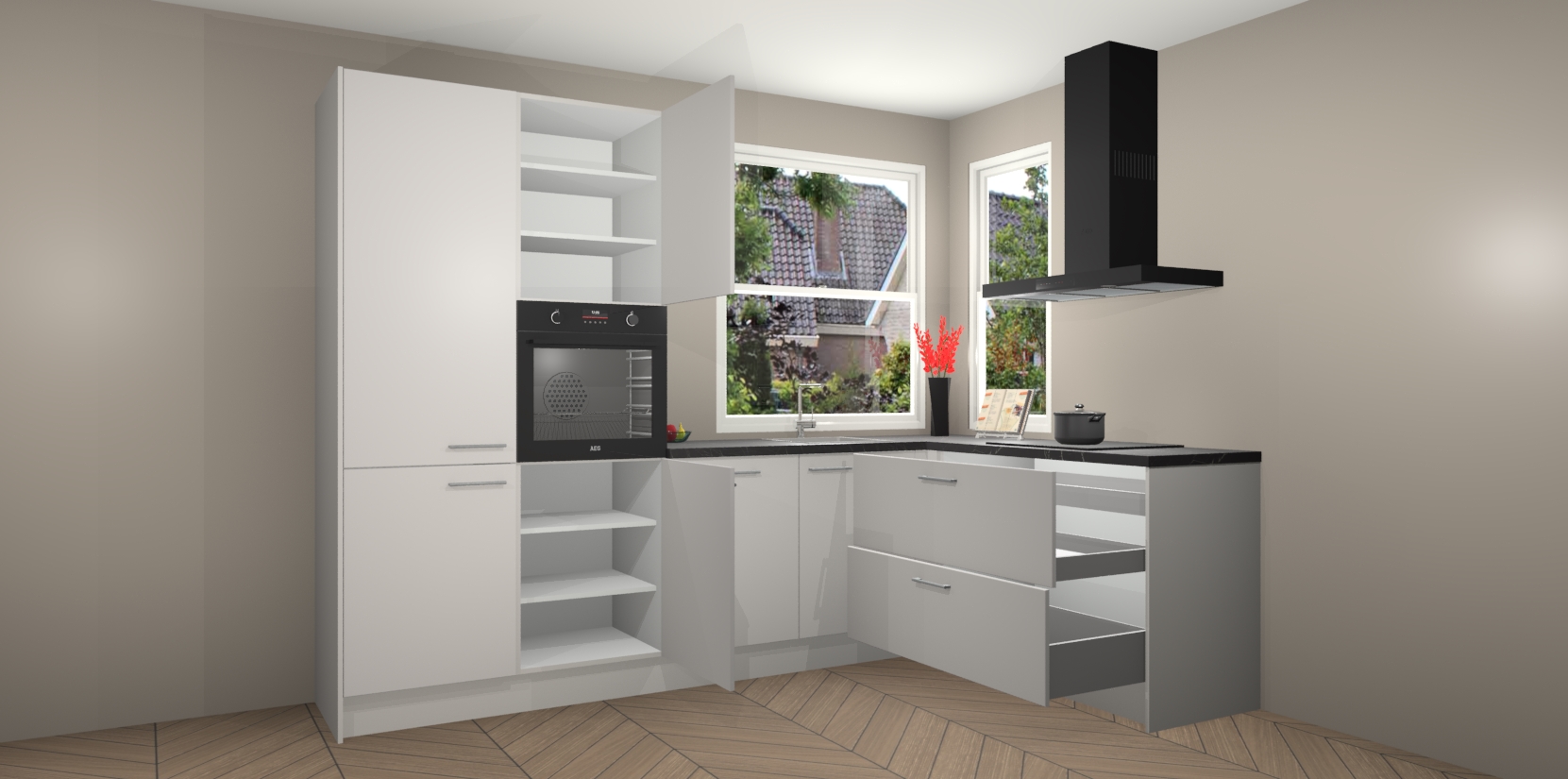 Het is tijd om halsoverkop verliefd te worden op uw droomkeuken, en de Zijdegrijze keuken Kotor is precies wat u nodig heeft! Met een moderne, tijdloze constructie en een mix van prachtig design zal deze luxe hoekkeuken zeker opvallen. Maar laat de schoonheid u niet afleiden van de indrukwekkende functies - want onder dit alles schuilt een onovertroffen hoeveelheid lekkers!