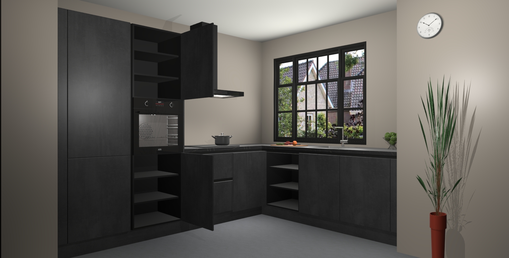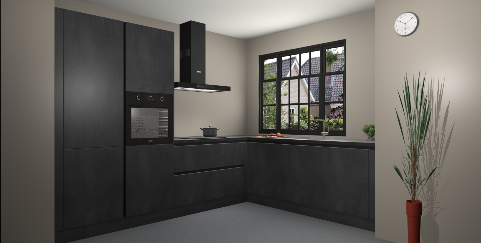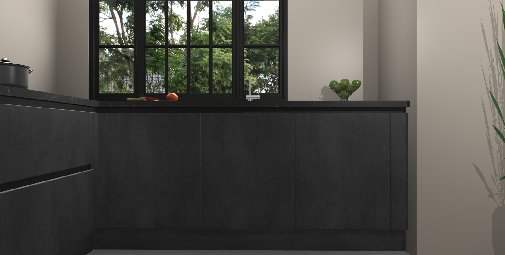 De deuren zijn gemaakt van hoogwaardig materiaal en bevestigd met een softclose-systeem. Kies voor de beton zwarte greeploze keuken en geniet van de vele voordelen waaronder een vaste lage prijs, een super snelle levering van 7 weken en de kasten die voorgemonteerd worden geleverd.