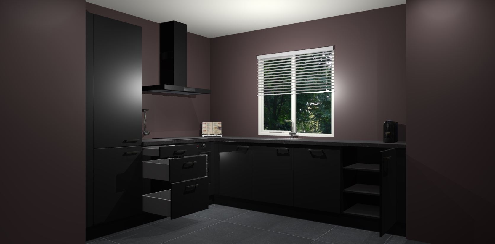 Met de Zwart keuken Doha Maakt u van uw keuken het pronkstuk van uw huis. Stijlvol en toch praktisch, de nieuwste look voor wie meer waarde en charme aan zijn huis wil toevoegen. Met prachtige zwarte handgrepen die zich lenen voor een klassieke stijlbron, zal u niet teleurgesteld zijn in het resultaat. De soft-close deurscharnieren geven een gevoel van luxe omdat ze zachtjes bewegen zonder storende of krakende geluiden te veroorzaken.