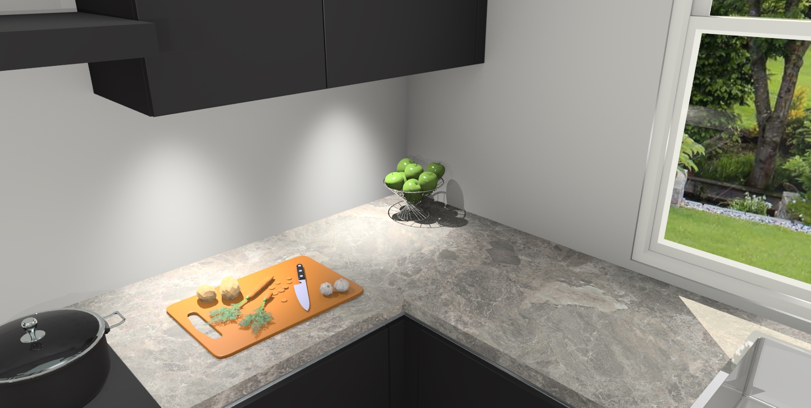 • Bij een hoekwerkblad zijn de hoeken in gevreesd en op maat gemaakt