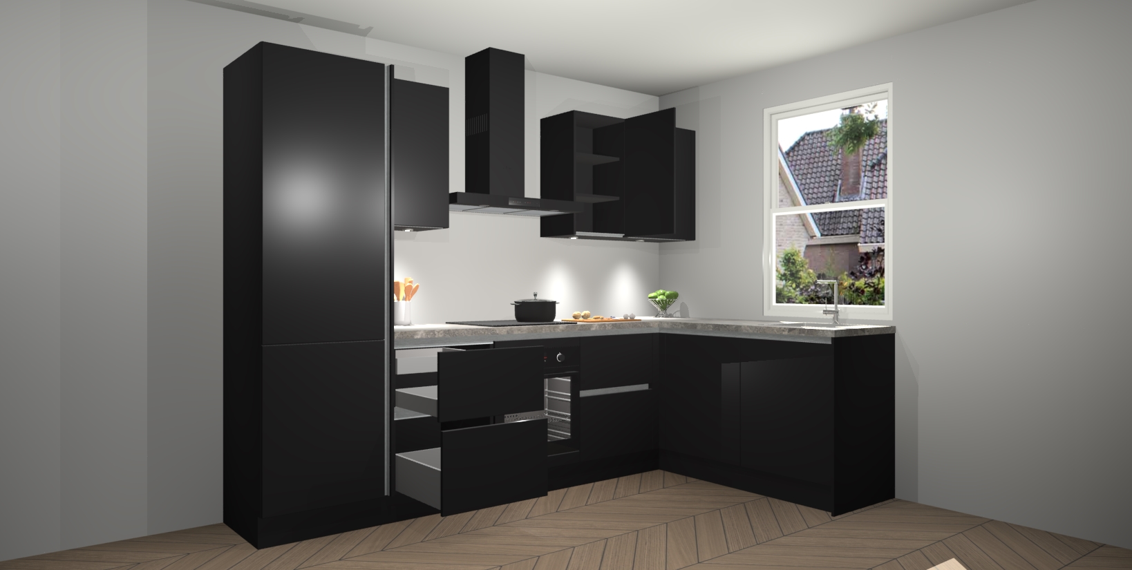 Maak kennis met de trendsettende en luxe Zwarte greeploze keuken Bazel! Deze uitzonderlijke keuken van Duitse kwaliteit is stijlvol, modern en perfect om elk huis mee op te fleuren. De binnenkant van de kasten worden meegenomen in een bijpassende kleur om een samenhangende eigentijdse esthetiek te voltooien. U zult dol zijn op hoe uw pas gerenoveerde keuken eruitziet met de Zwarte editie!
