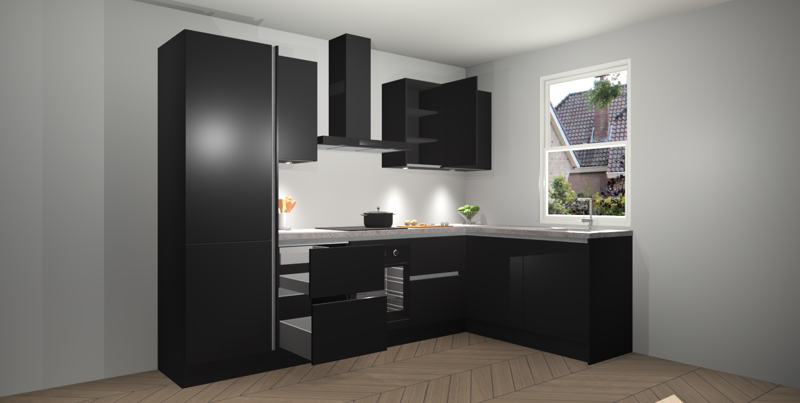 Maak kennis met de trendsettende en luxe Zwarte greeploze keuken Bazel! Deze uitzonderlijke keuken van Duitse kwaliteit is stijlvol, modern en perfect om elk huis mee op te fleuren. De binnenkant van de kasten worden meegenomen in een bijpassende kleur om een samenhangende eigentijdse esthetiek te voltooien. U zult dol zijn op hoe uw pas gerenoveerde keuken eruitziet met de Zwarte editie!
