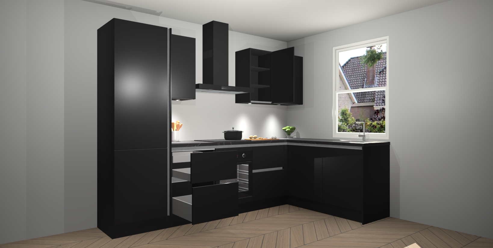Maak kennis met de trendsettende en luxe Zwarte greeploze keuken Bazel! Deze uitzonderlijke keuken van Duitse kwaliteit is stijlvol, modern en perfect om elk huis mee op te fleuren. De binnenkant van de kasten worden meegenomen in een bijpassende kleur om een samenhangende eigentijdse esthetiek te voltooien. U zult dol zijn op hoe uw pas gerenoveerde keuken eruitziet met de Zwarte editie!