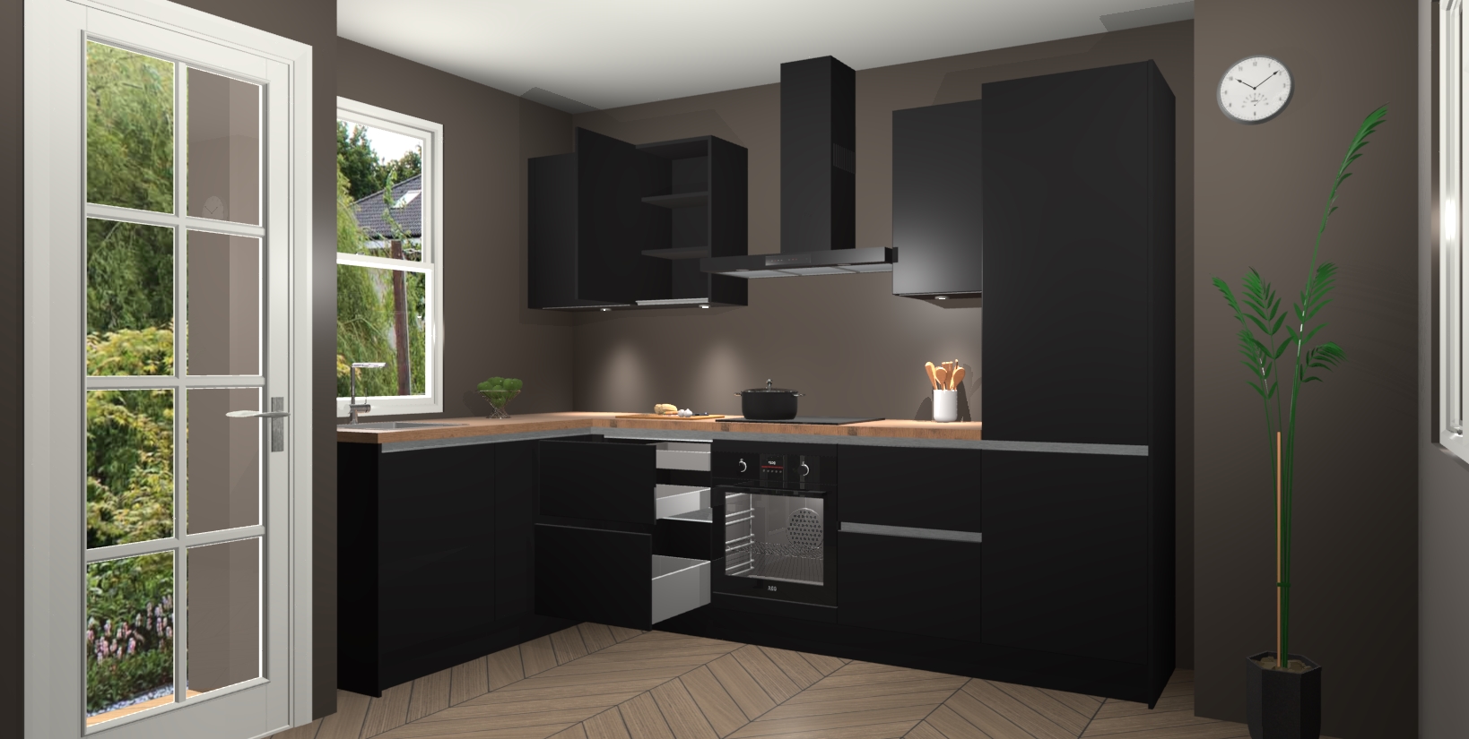 Bent u op zoek naar een strakke, moderne hoekkeuken die uw huis oppept en een moderne uitstraling geeft? Kijk dan niet verder dan de zwarte greeploze keuken Beijing. Deze verbluffende hoekkeuken tilt hedendaags design naar een hoger niveau. Qua stijl is deze chique hoekkeuken voorzien van zwarte accenten, om een strakke maar opvallende look te creëren. De binnenkant van de kasten is afgewerkt in dezelfde prachtige zwarte kleur voor extra esthetische aantrekkingskracht.