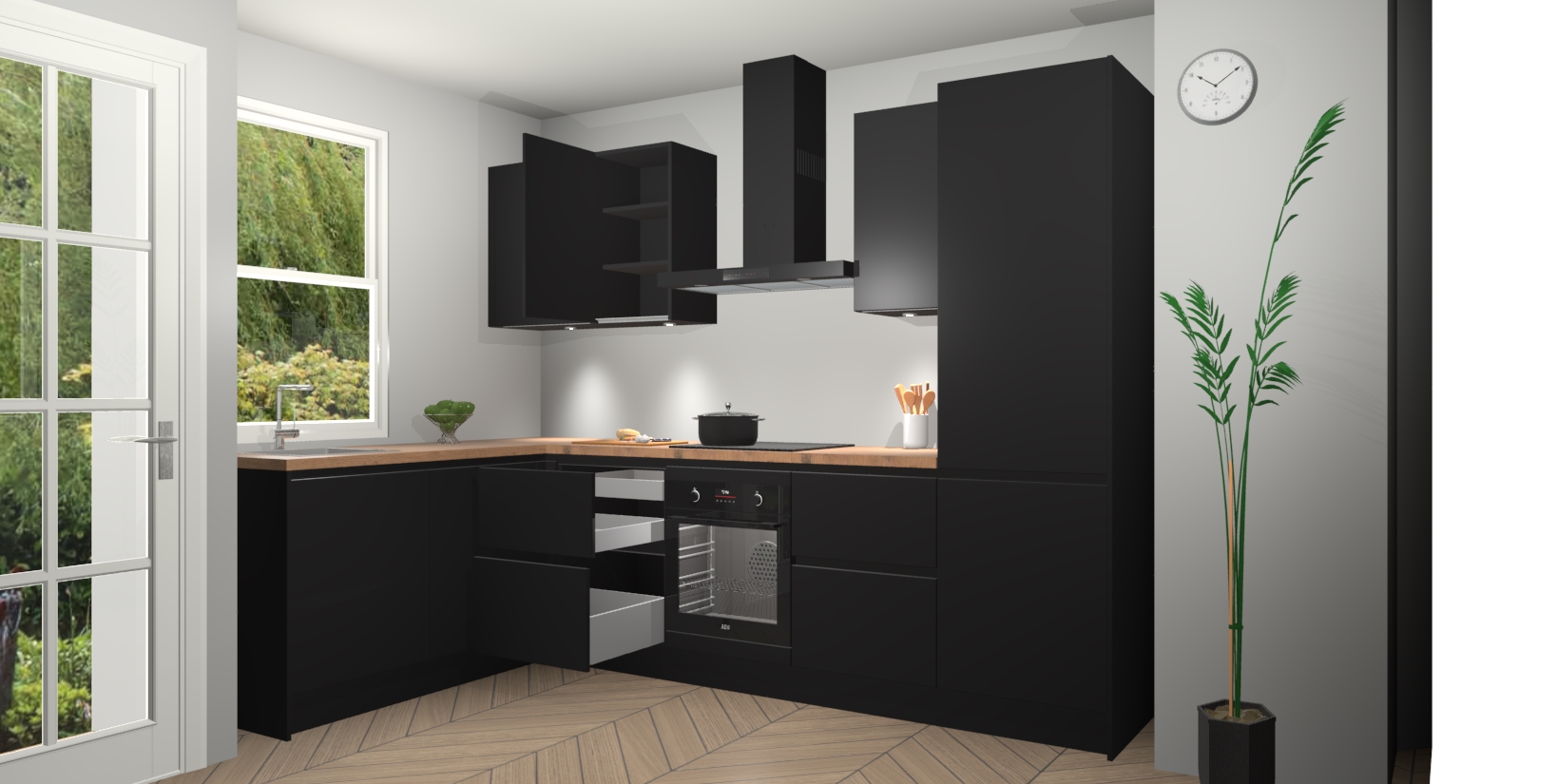 Inclusief plinten, stelpoten en werkblad