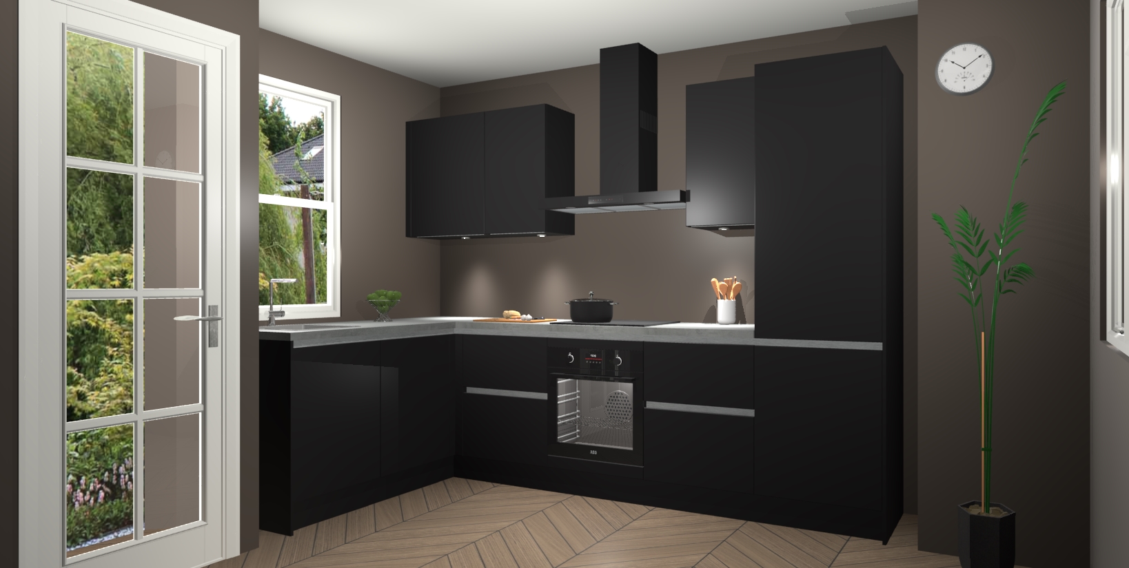 Bent u op zoek naar een strakke, moderne hoekkeuken die uw huis oppept en een moderne uitstraling geeft? Kijk dan niet verder dan de zwarte greeploze keuken Beijing. Deze verbluffende hoekkeuken tilt hedendaags design naar een hoger niveau. Qua stijl is deze chique hoekkeuken voorzien van zwarte accenten, om een strakke maar opvallende look te creëren. De binnenkant van de kasten is afgewerkt in dezelfde prachtige zwarte kleur voor extra esthetische aantrekkingskracht.