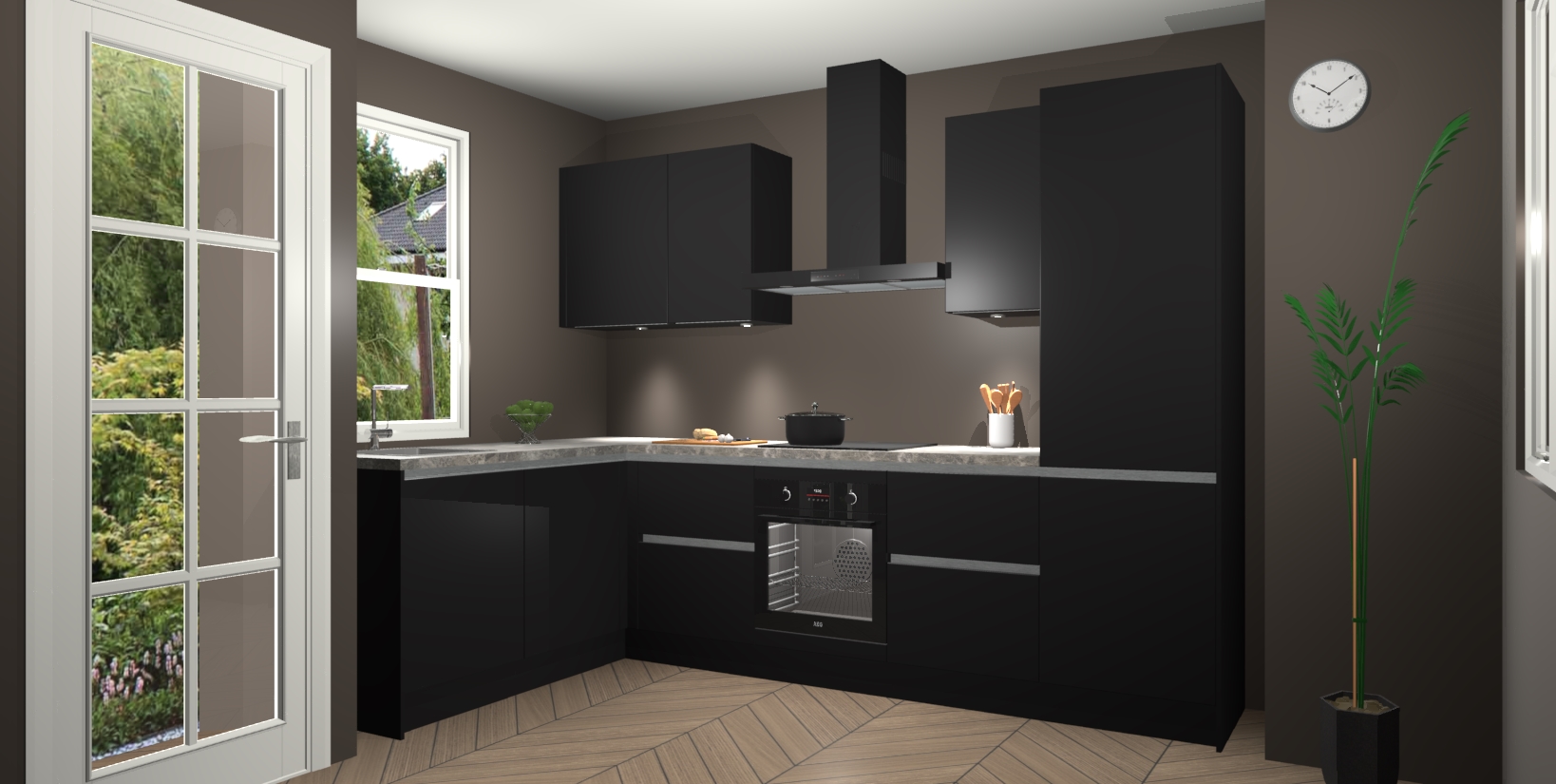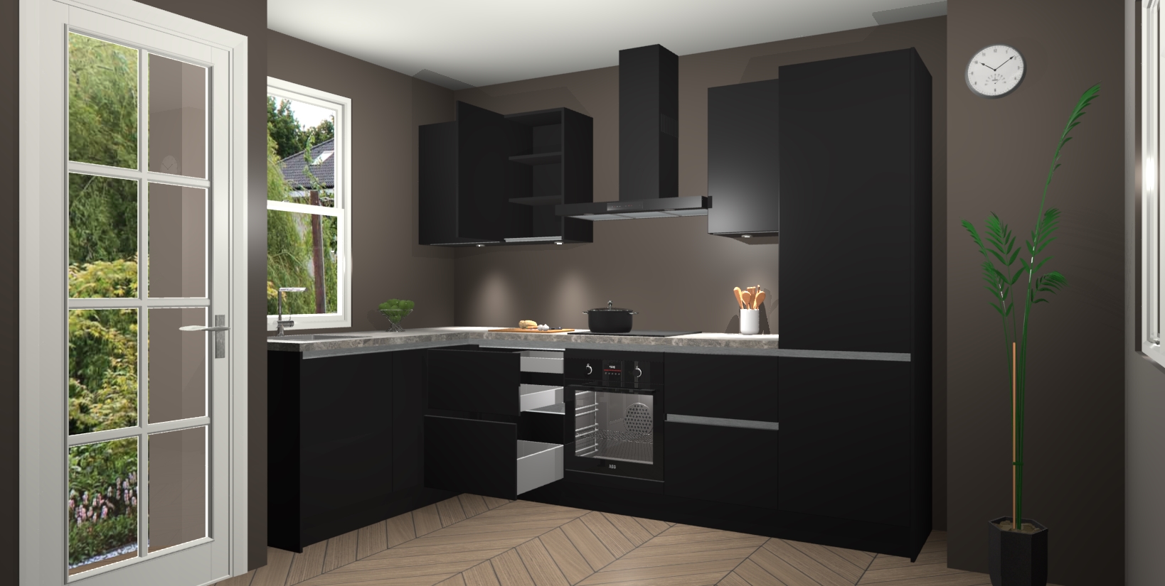 Bent u op zoek naar een strakke, moderne hoekkeuken die uw huis oppept en een moderne uitstraling geeft? Kijk dan niet verder dan de zwarte greeploze keuken Beijing. Deze verbluffende hoekkeuken tilt hedendaags design naar een hoger niveau. Qua stijl is deze chique hoekkeuken voorzien van zwarte accenten, om een strakke maar opvallende look te creëren. De binnenkant van de kasten is afgewerkt in dezelfde prachtige zwarte kleur voor extra esthetische aantrekkingskracht.