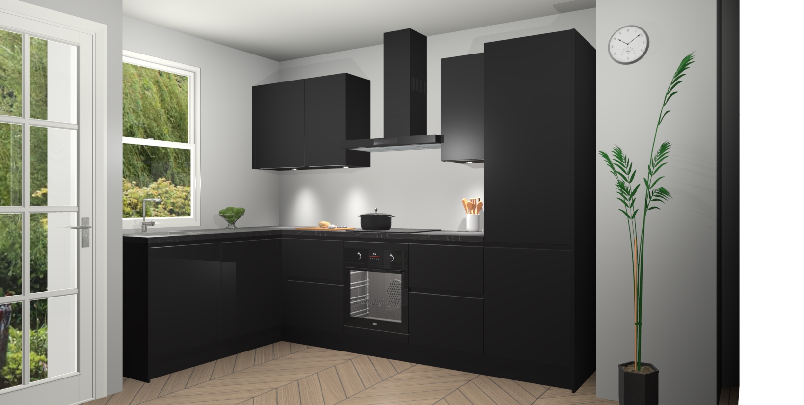 Bent u op zoek naar een strakke, moderne hoekkeuken die uw huis oppept en een moderne uitstraling geeft? Kijk dan niet verder dan de zwarte greeploze keuken Beijing. Deze verbluffende hoekkeuken tilt hedendaags design naar een hoger niveau. Qua stijl is deze chique hoekkeuken voorzien van zwarte accenten, om een strakke maar opvallende look te creëren. De binnenkant van de kasten is afgewerkt in dezelfde prachtige zwarte kleur voor extra esthetische aantrekkingskracht.