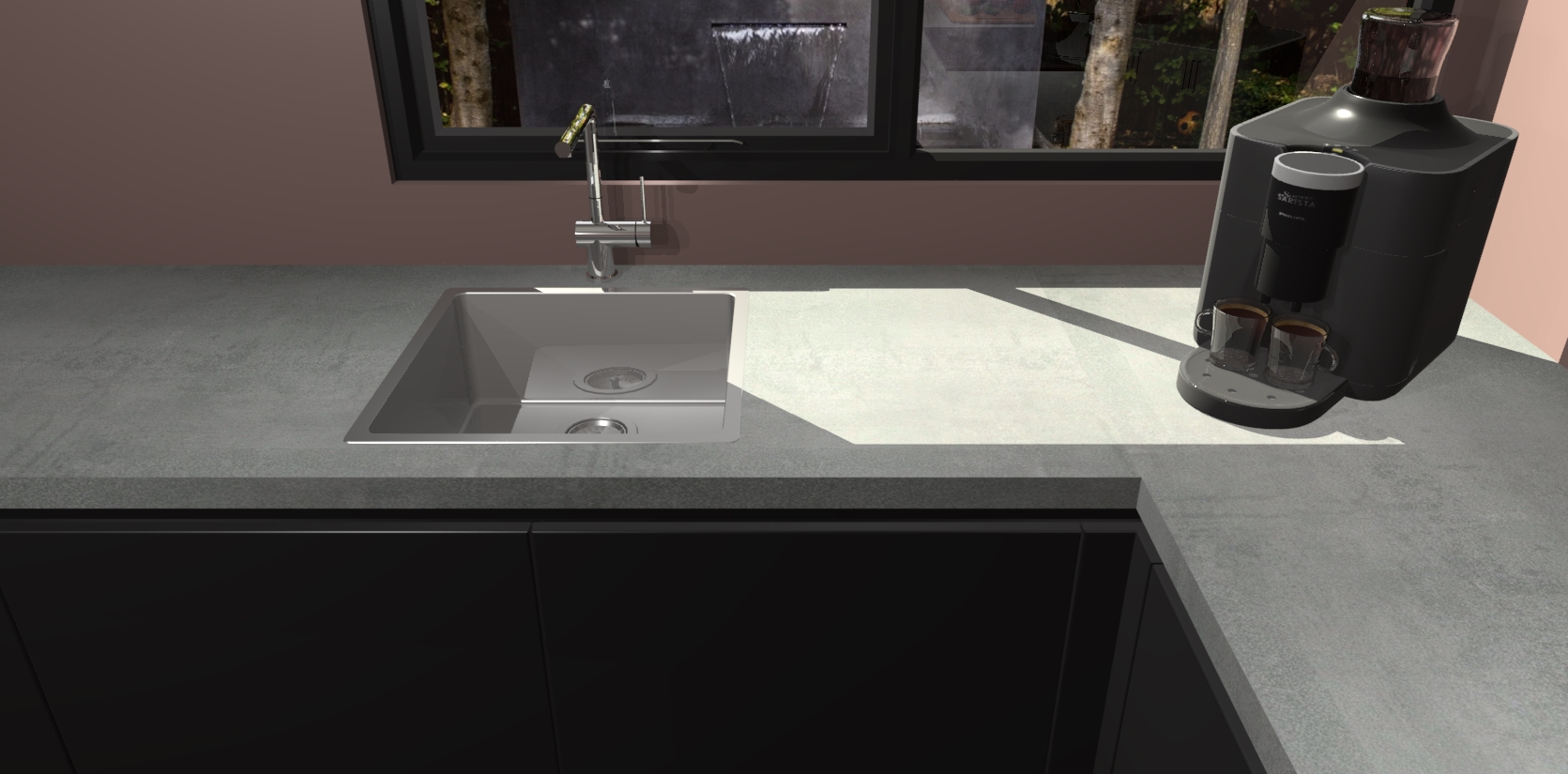 - De spoelbak is nog niet in gevreesd. Dit dient tijdens het werk gedaan te worden