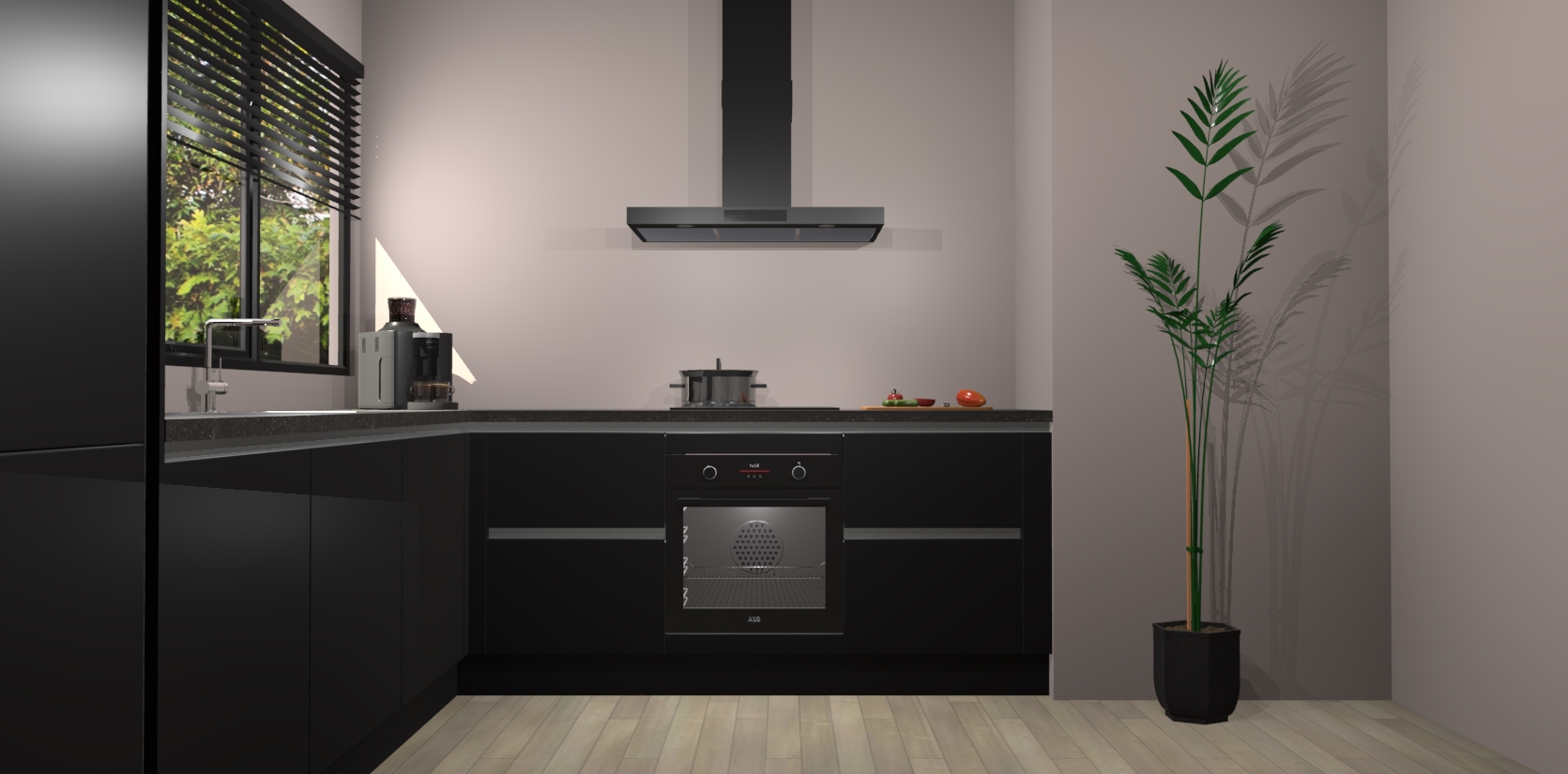 Met een modern, tijdloos design en ruime opslagruimte, zult u zich in no-time thuis voelen in uw nieuwe keuken. Uw leven wordt eenvoudiger met de soft-close deuren die voor het ultieme stille comfort zorgen - geen geluid dat u stoort terwijl u kookt. Ook is de keuken voorzien van 5 ingebouwde apparaten: een oven, inductie kookplaat, afzuigkap, vaatwasser en koelkast. Deze kunnen gemakkelijk na bestelling worden bijgewerkt naar AEG - waardoor uw luxe ervaring compleet is.