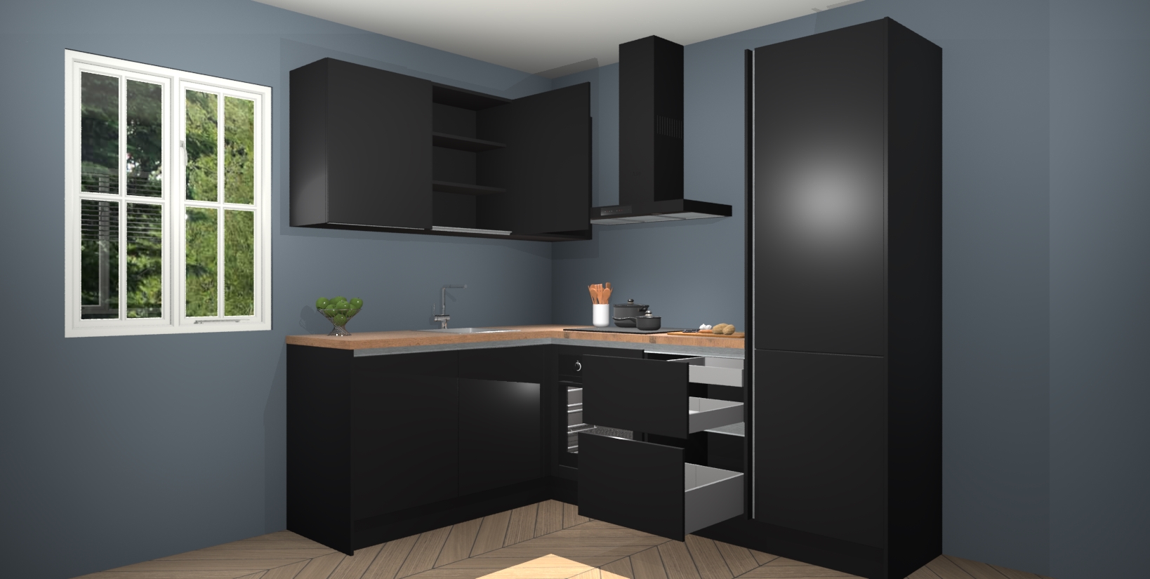 In deze box zijn alle kleuren verzameld van de deuren en werkbladen. Vraag de gratis kleurenbox aan en kijk thuis rustig verder!