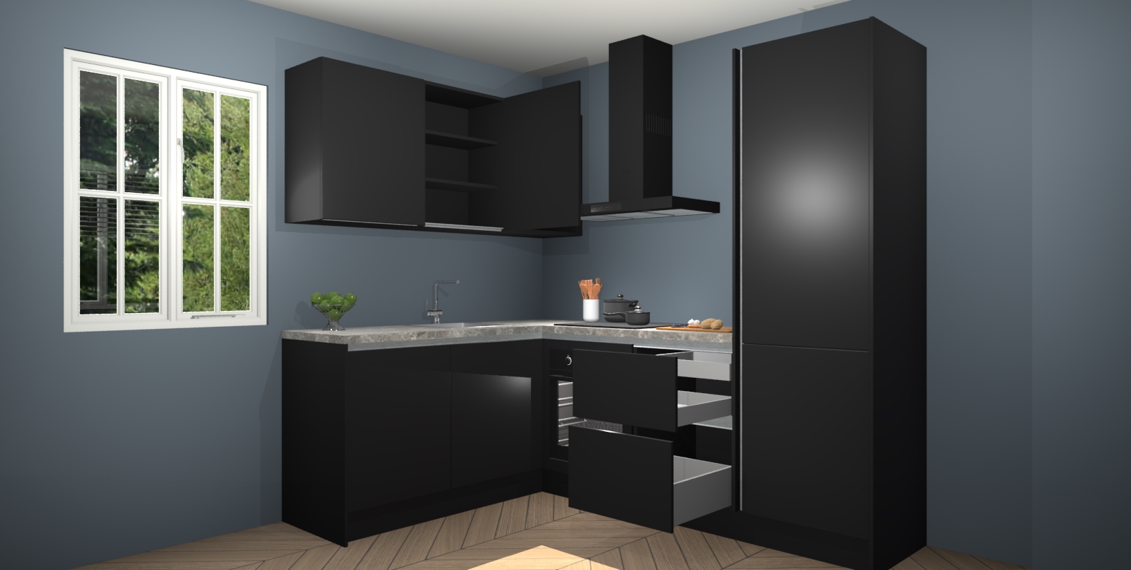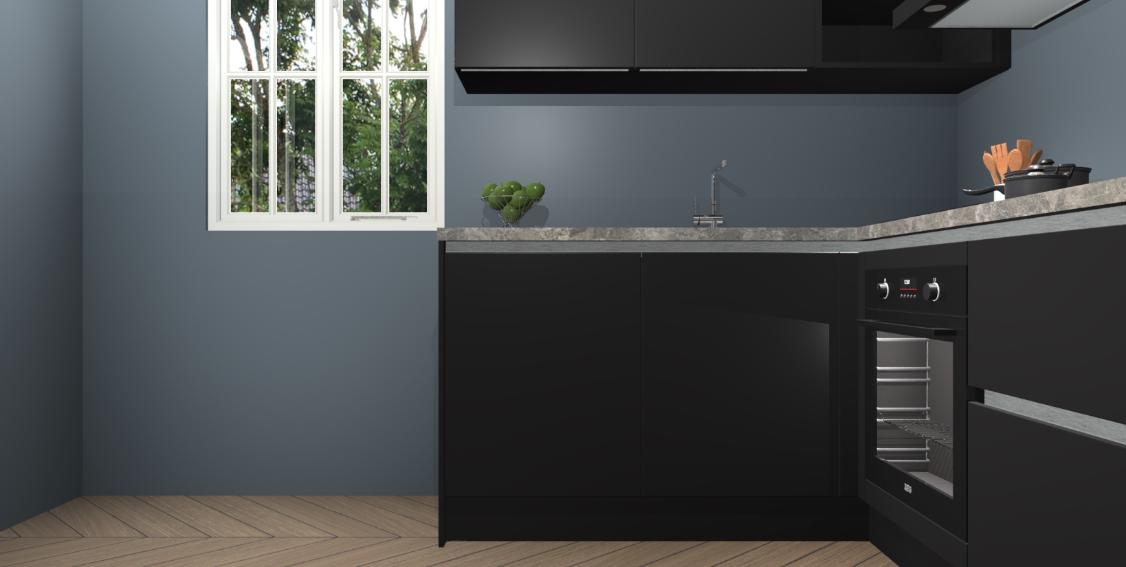 Maak kennis met de Zwarte greeploze keuken Boekarest, een moderne hoekkeuken waar al uw vrienden en familie jaloers op zullen zijn! Het verbluffende mooie ontwerp past in elk interieur en is een ideale keuze voor wie op zoek is naar een klassieke, maar verfijnde look.