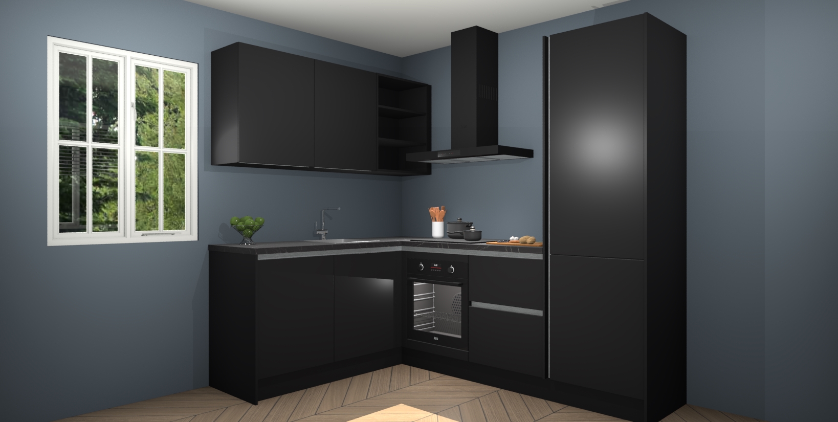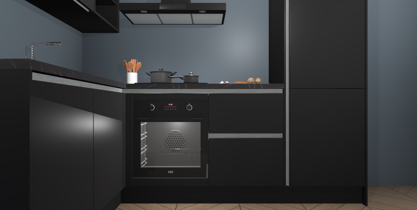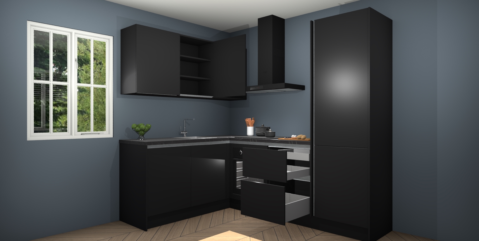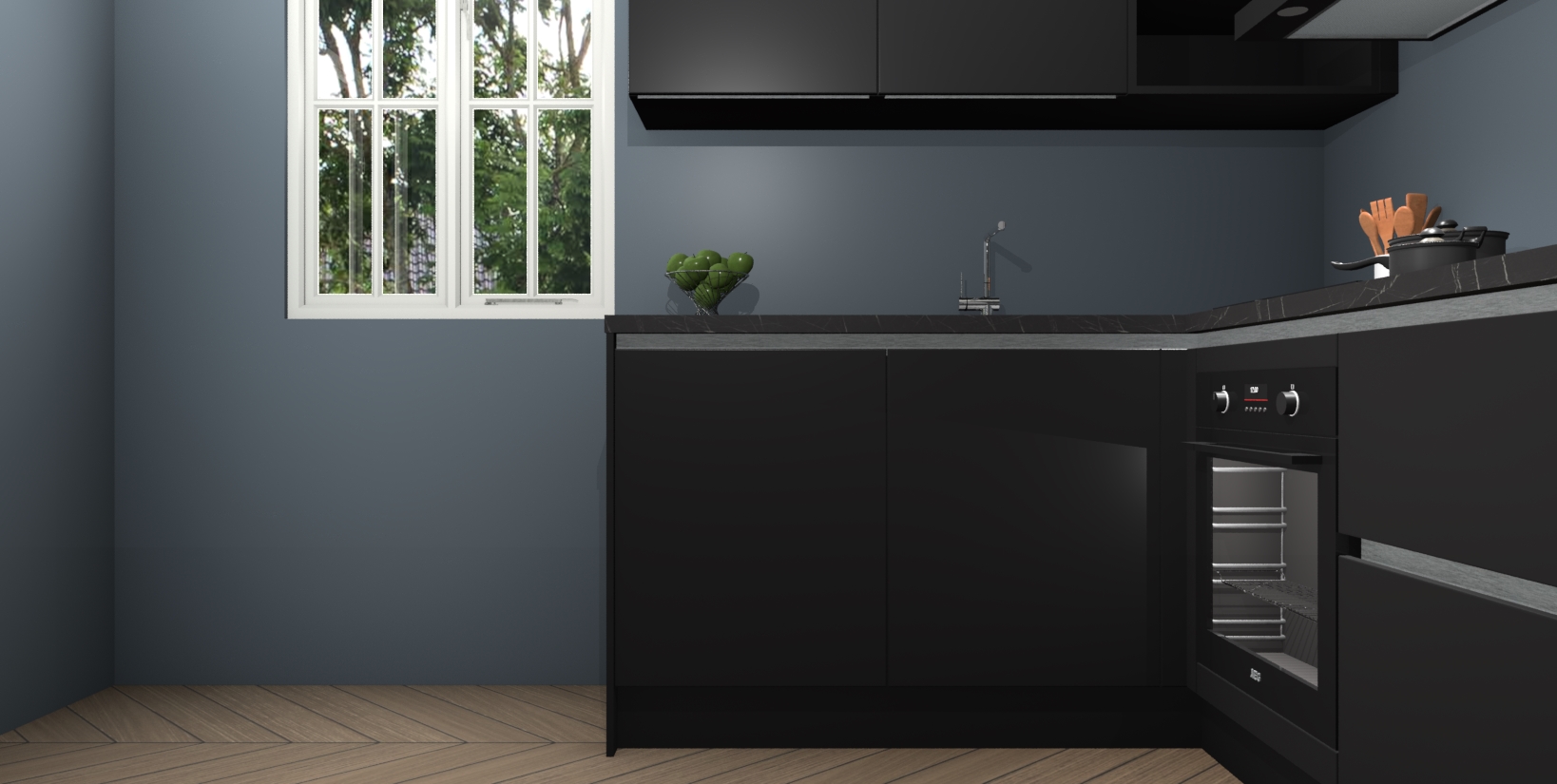 Maak kennis met de Zwarte greeploze keuken Boekarest, een moderne hoekkeuken waar al uw vrienden en familie jaloers op zullen zijn! Het verbluffende mooie ontwerp past in elk interieur en is een ideale keuze voor wie op zoek is naar een klassieke, maar verfijnde look.