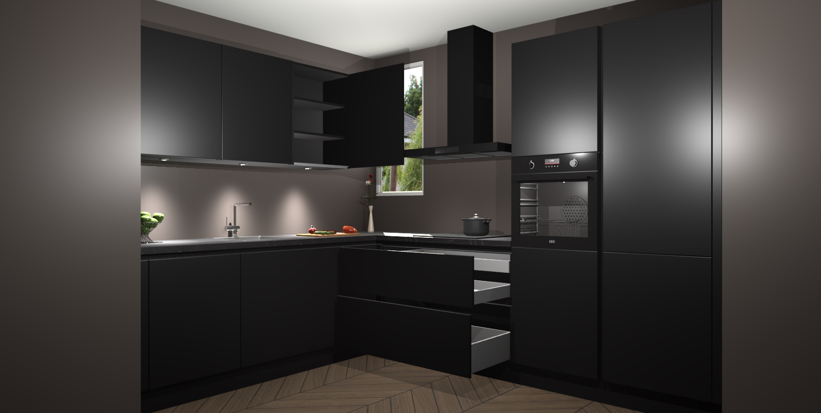 In deze box zijn alle kleuren verzameld van de deuren en werkbladen. Vraag de gratis kleurenbox aan en kijk thuis rustig verder!