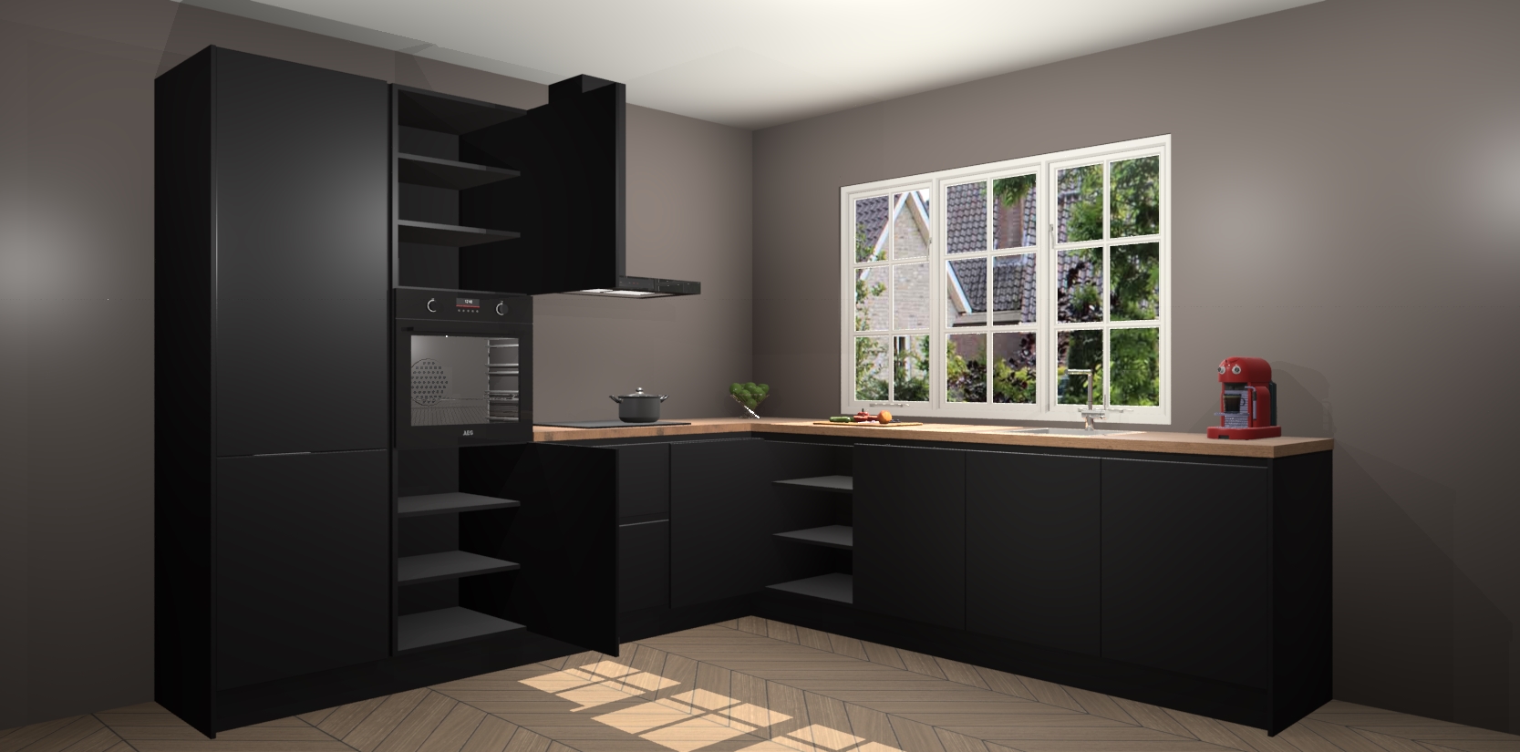 Welkom in de nieuwe wereld van een moderne keuken: de Zwarte greeploze keuken Casablanca! Met dit innovatieve keukendesign haalt u de natuur naar binnen. Neem plaats aan uw hout-look keuken en voel u verbonden met de prachtige Zwarte kleur. Zeer gebruiksvriendelijk, ervaring door prettige materialen en kleur die perfect aansluiten bij uw sfeerkeuze in huis.
