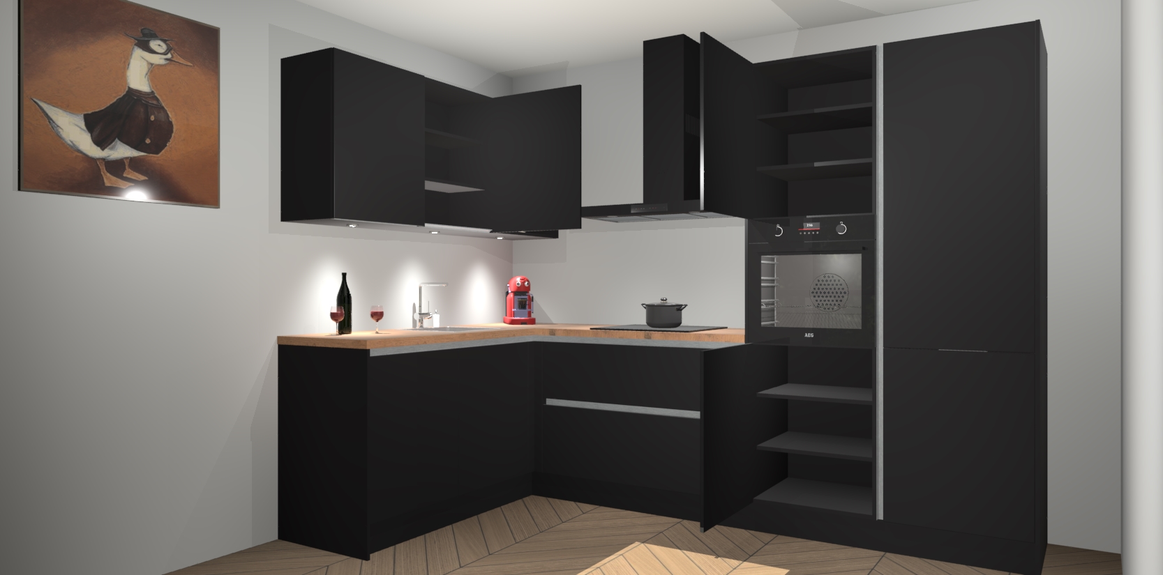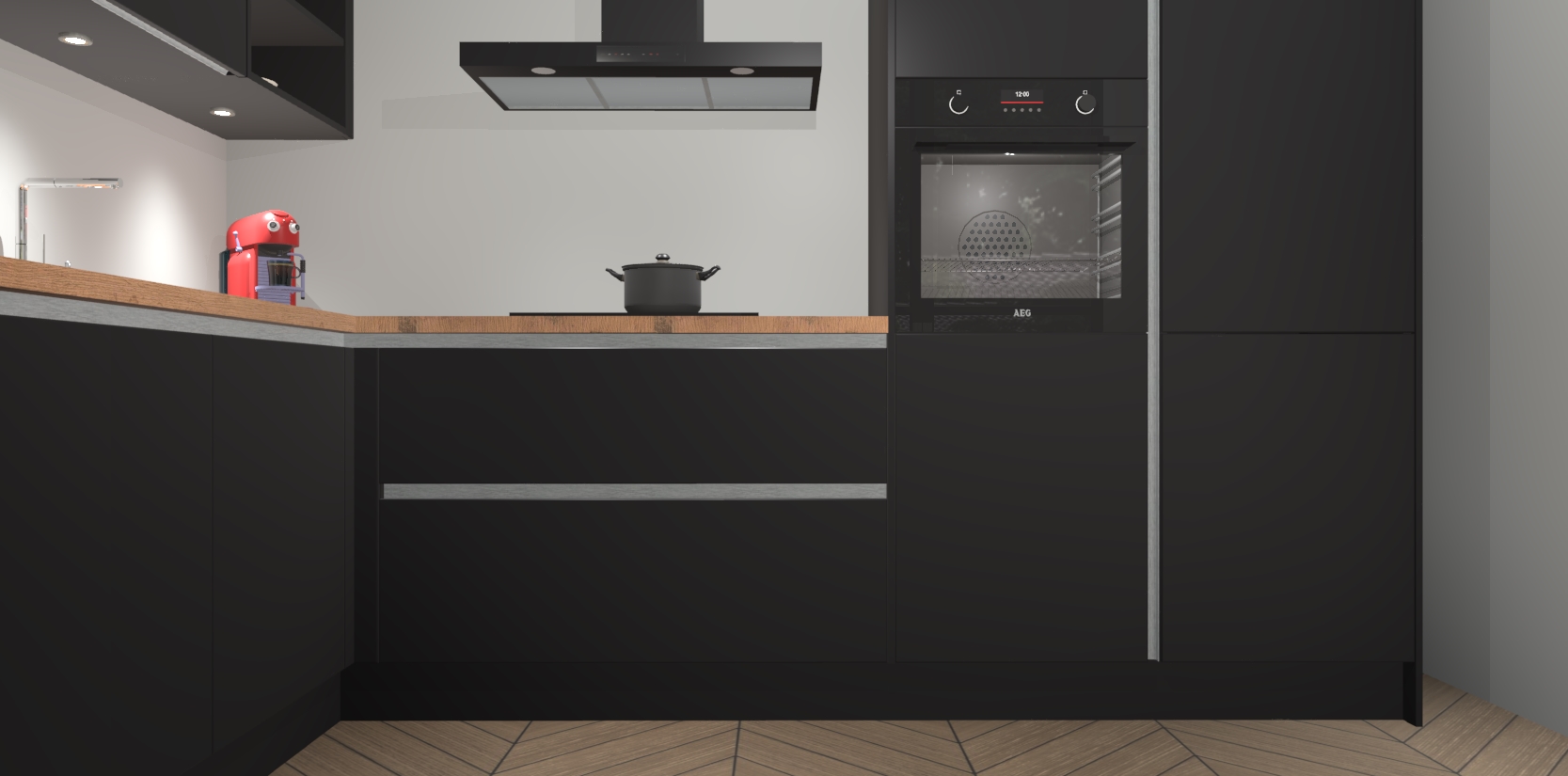 De Zwarte greeploze keuken Cognac gaat alleen maar om de beste keukenervaring. Kies gewoon de beste apparatuur en ongeëvenaarde Duitse constructie die u thuis wilt hebben en verander uw huiskamer hartelijkheid meteen in professionaliteit. Laat de toon weten dat u gemakkelijk kan genieten van alle luxe die u verdiend? Bestel nu de Zwarte greeploze keuken Cognac voor bij u thuis!