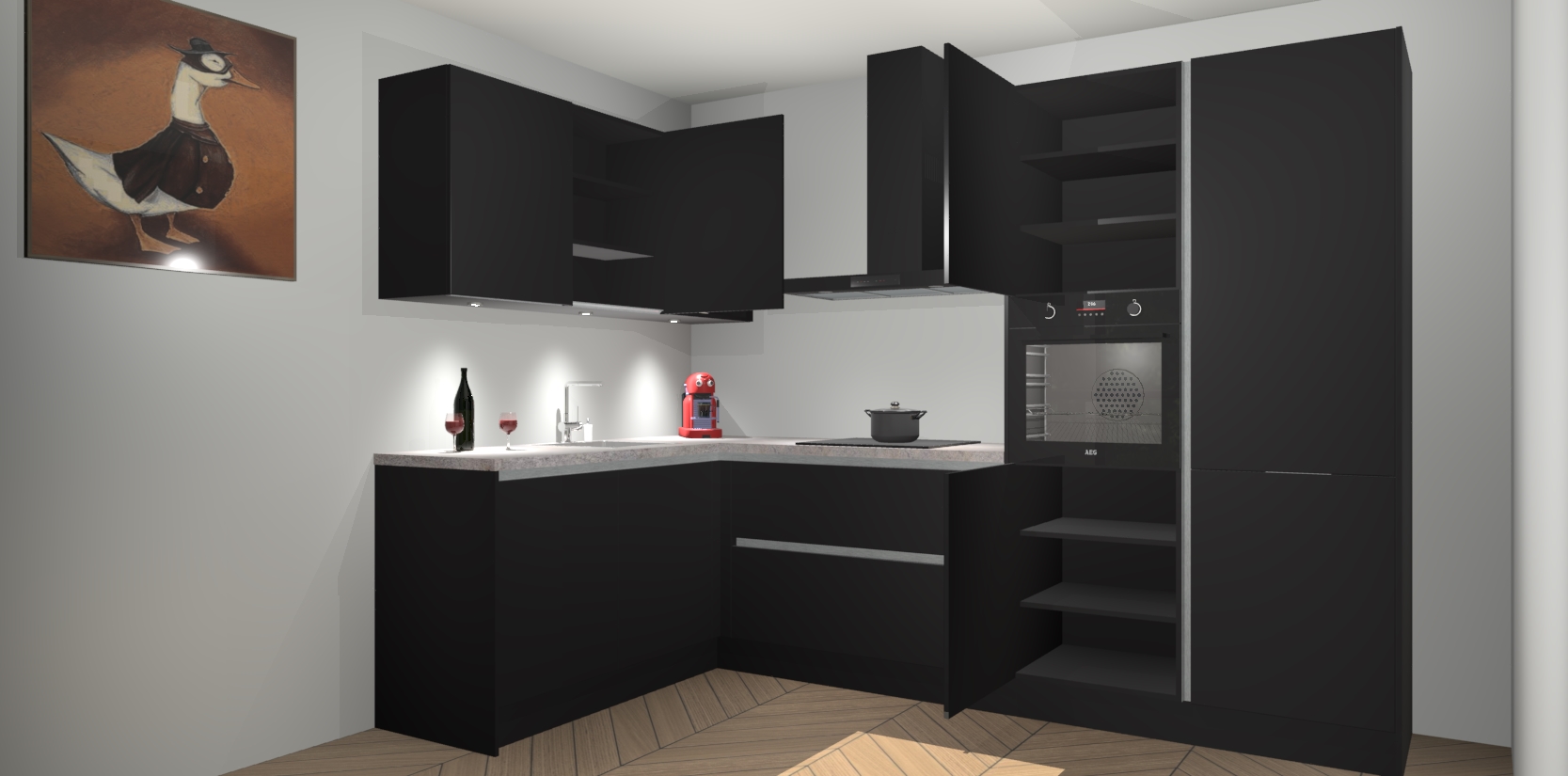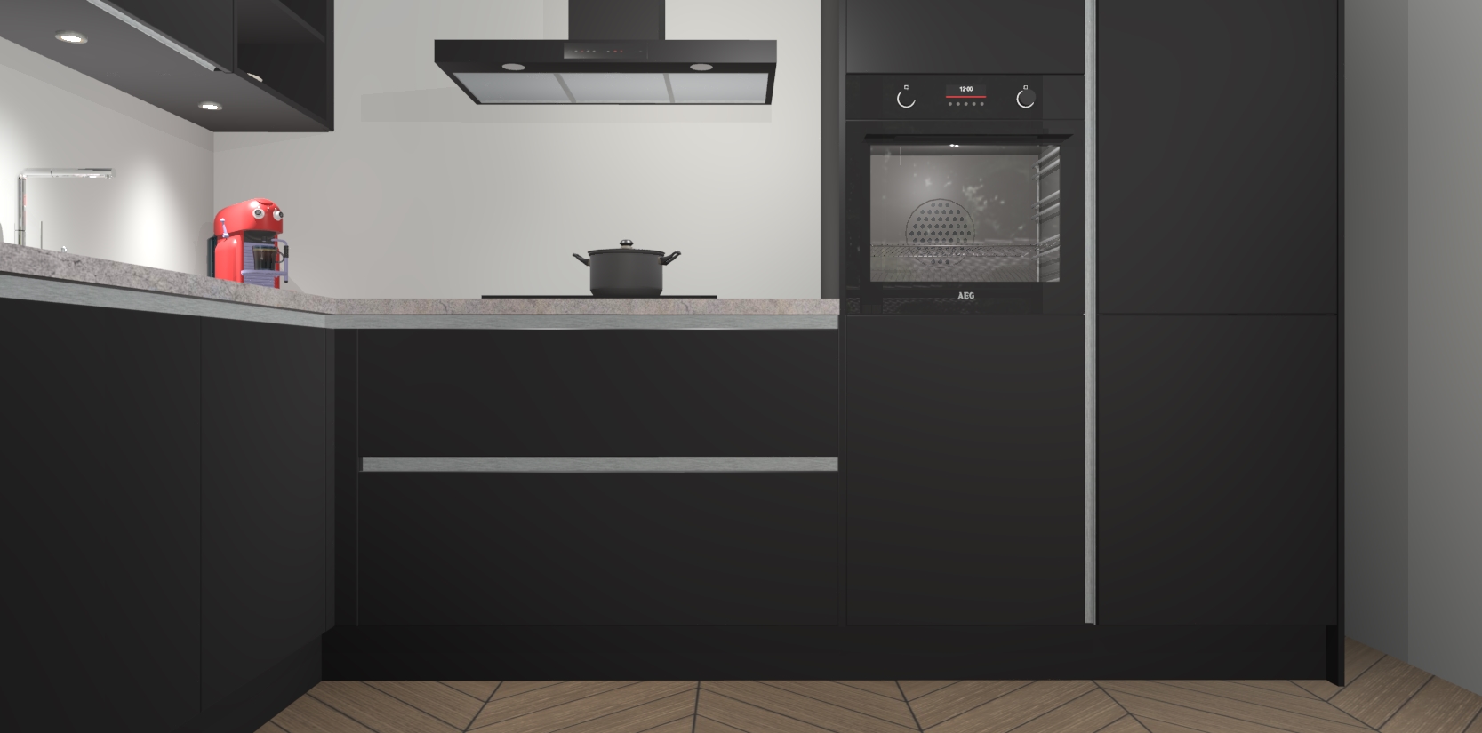 De Zwarte greeploze keuken Cognac gaat alleen maar om de beste keukenervaring. Kies gewoon de beste apparatuur en ongeëvenaarde Duitse constructie die u thuis wilt hebben en verander uw huiskamer hartelijkheid meteen in professionaliteit. Laat de toon weten dat u gemakkelijk kan genieten van alle luxe die u verdiend? Bestel nu de Zwarte greeploze keuken Cognac voor bij u thuis!