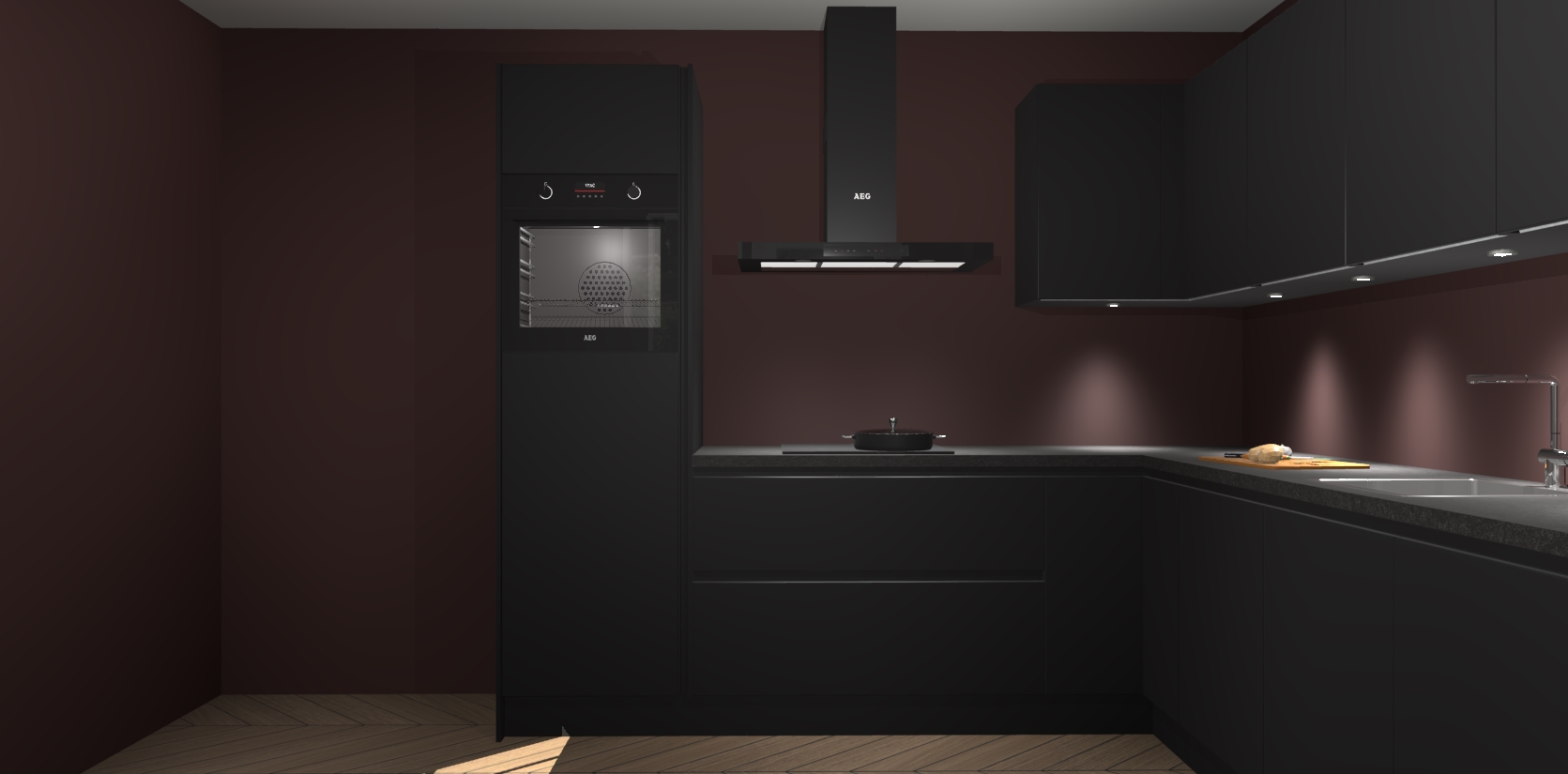 De Zwarte greeploze keuken Debar is uitgerust met vijf inbouwapparaten die elke kooktaak handig en efficiënt maken. Een oven, inductiekookplaat, afzuigkap, vaatwasser en koelkast zijn standaard, maar kunnen na bestelling eenvoudig worden geupgrade naar AEG. Profiteer vervolgens van de softclose deuren voor snelle toegang en geruisloze toegang.