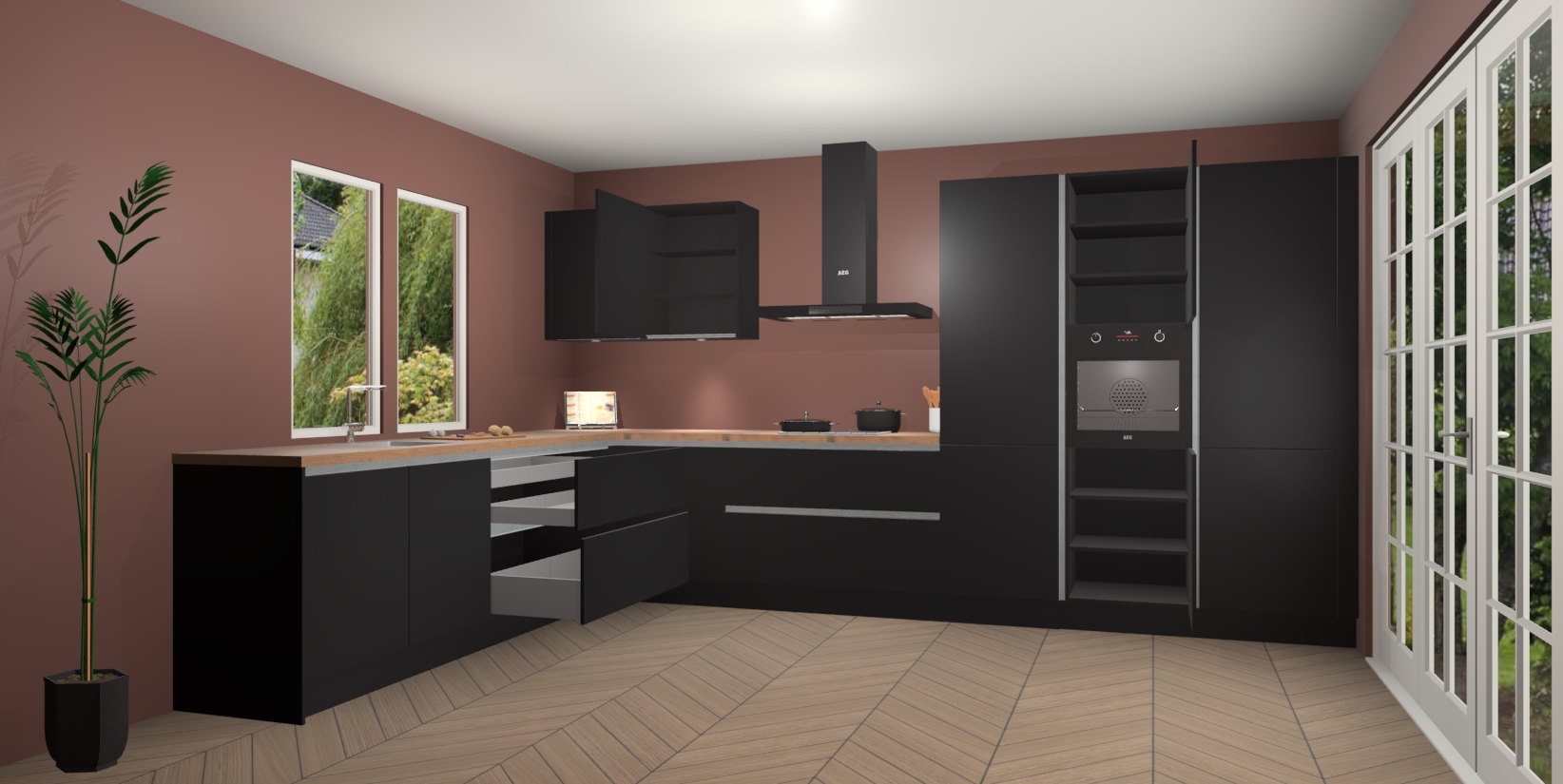 Heeft u nog apparatuur nodig? Geen probleem: de Zwarte greeploze keuken Debrecen bevat vijf ingebouwde apparaten - een oven, inductiekookplaat, afzuigkap, vaatwasser en koelkast - die gemakkelijk kunnen worden bijgewerkt naar AEG na bestelling. En als dat nog niet genoeg is; onze kasten worden pre-geassembleerd geleverd en zijn verkrijgbaar tegen een vastgeroeste lage prijs! U hoeft nooit meer te zoeken naar goede kwaliteit en service want onze producten hebben echt Duitse kwaliteit.