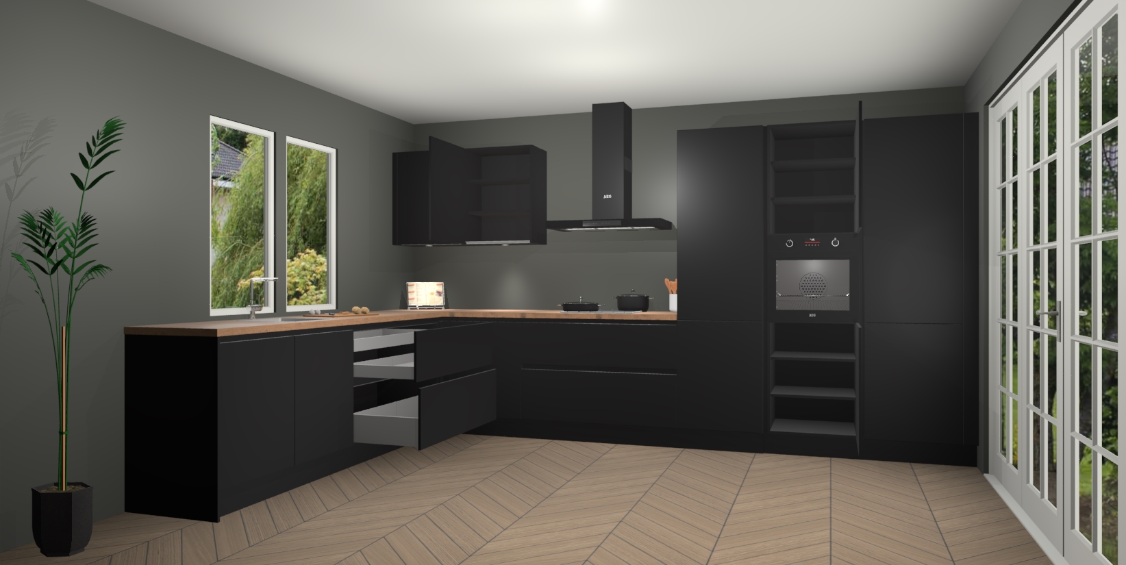 Heeft u nog apparatuur nodig? Geen probleem: de Zwarte greeploze keuken Debrecen bevat vijf ingebouwde apparaten - een oven, inductiekookplaat, afzuigkap, vaatwasser en koelkast - die gemakkelijk kunnen worden bijgewerkt naar AEG na bestelling. En als dat nog niet genoeg is; onze kasten worden pre-geassembleerd geleverd en zijn verkrijgbaar tegen een vastgeroeste lage prijs! U hoeft nooit meer te zoeken naar goede kwaliteit en service want onze producten hebben echt Duitse kwaliteit.