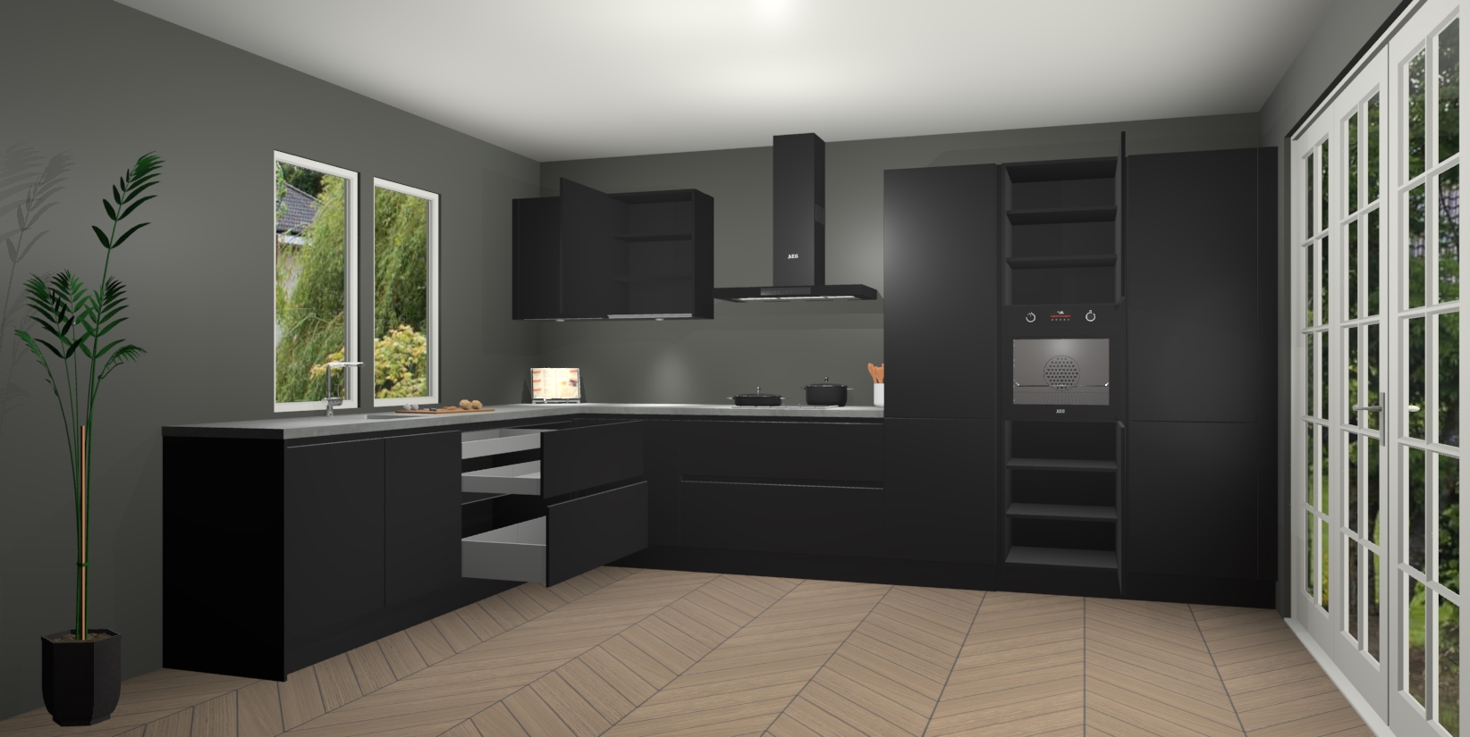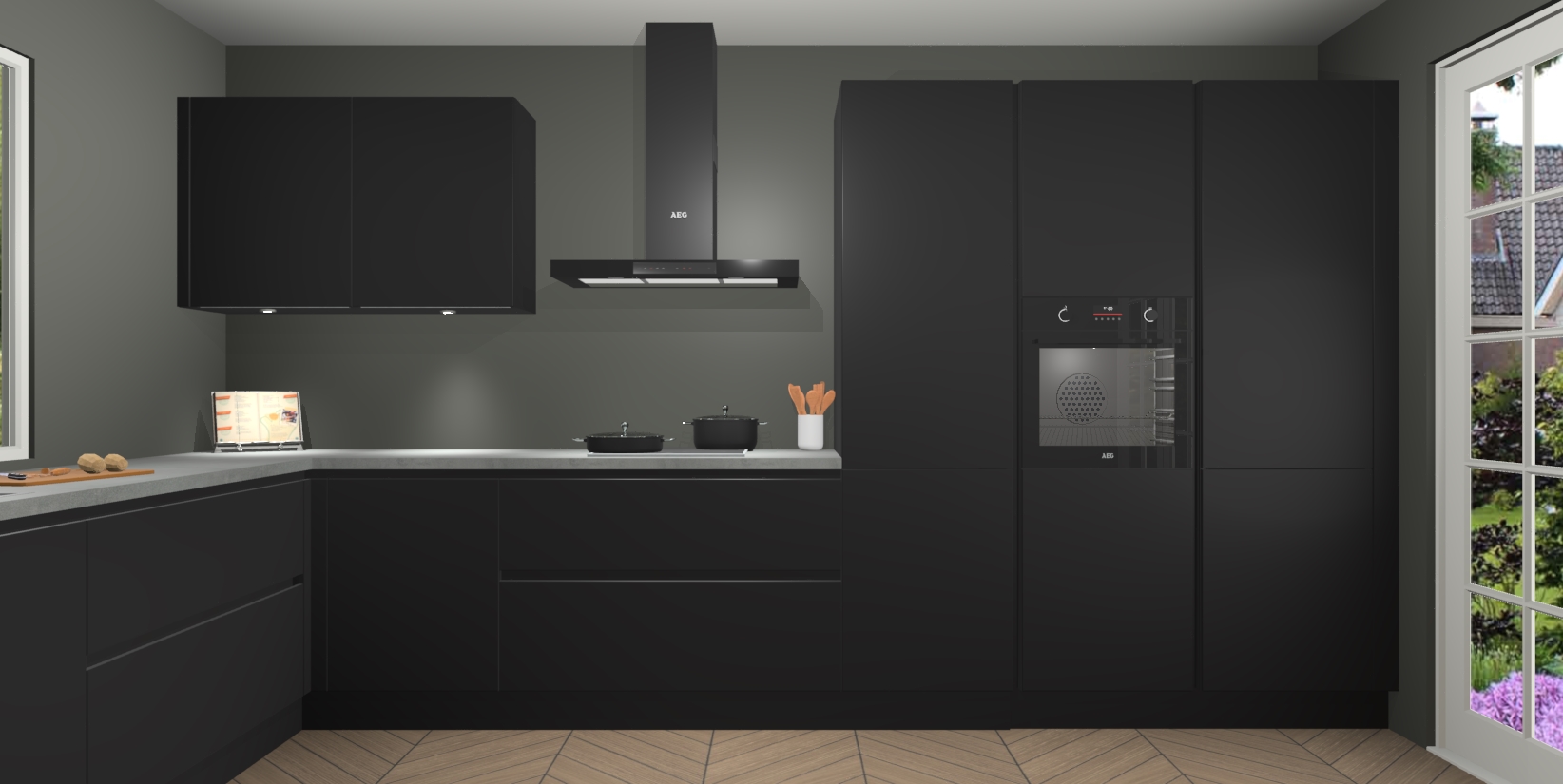 Heeft u nog apparatuur nodig? Geen probleem: de Zwarte greeploze keuken Debrecen bevat vijf ingebouwde apparaten - een oven, inductiekookplaat, afzuigkap, vaatwasser en koelkast - die gemakkelijk kunnen worden bijgewerkt naar AEG na bestelling. En als dat nog niet genoeg is; onze kasten worden pre-geassembleerd geleverd en zijn verkrijgbaar tegen een vastgeroeste lage prijs! U hoeft nooit meer te zoeken naar goede kwaliteit en service want onze producten hebben echt Duitse kwaliteit.