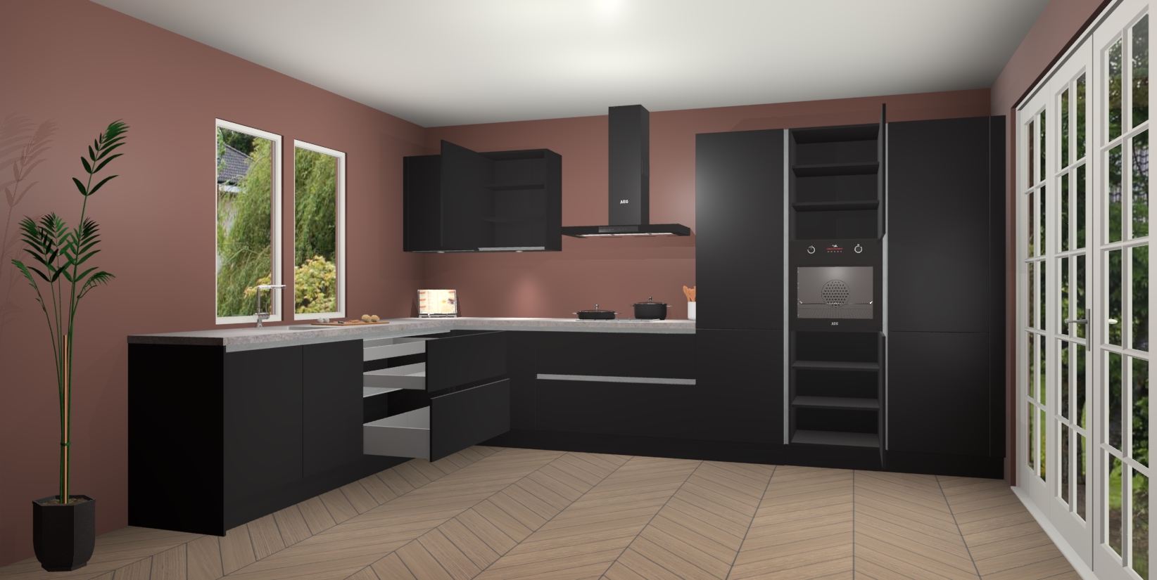 Heeft u nog apparatuur nodig? Geen probleem: de Zwarte greeploze keuken Debrecen bevat vijf ingebouwde apparaten - een oven, inductiekookplaat, afzuigkap, vaatwasser en koelkast - die gemakkelijk kunnen worden bijgewerkt naar AEG na bestelling. En als dat nog niet genoeg is; onze kasten worden pre-geassembleerd geleverd en zijn verkrijgbaar tegen een vastgeroeste lage prijs! U hoeft nooit meer te zoeken naar goede kwaliteit en service want onze producten hebben echt Duitse kwaliteit.
