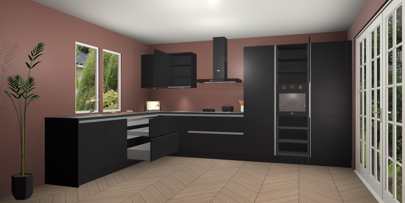 Heeft u nog apparatuur nodig? Geen probleem: de Zwarte greeploze keuken Debrecen bevat vijf ingebouwde apparaten - een oven, inductiekookplaat, afzuigkap, vaatwasser en koelkast - die gemakkelijk kunnen worden bijgewerkt naar AEG na bestelling. En als dat nog niet genoeg is; onze kasten worden pre-geassembleerd geleverd en zijn verkrijgbaar tegen een vastgeroeste lage prijs! U hoeft nooit meer te zoeken naar goede kwaliteit en service want onze producten hebben echt Duitse kwaliteit.