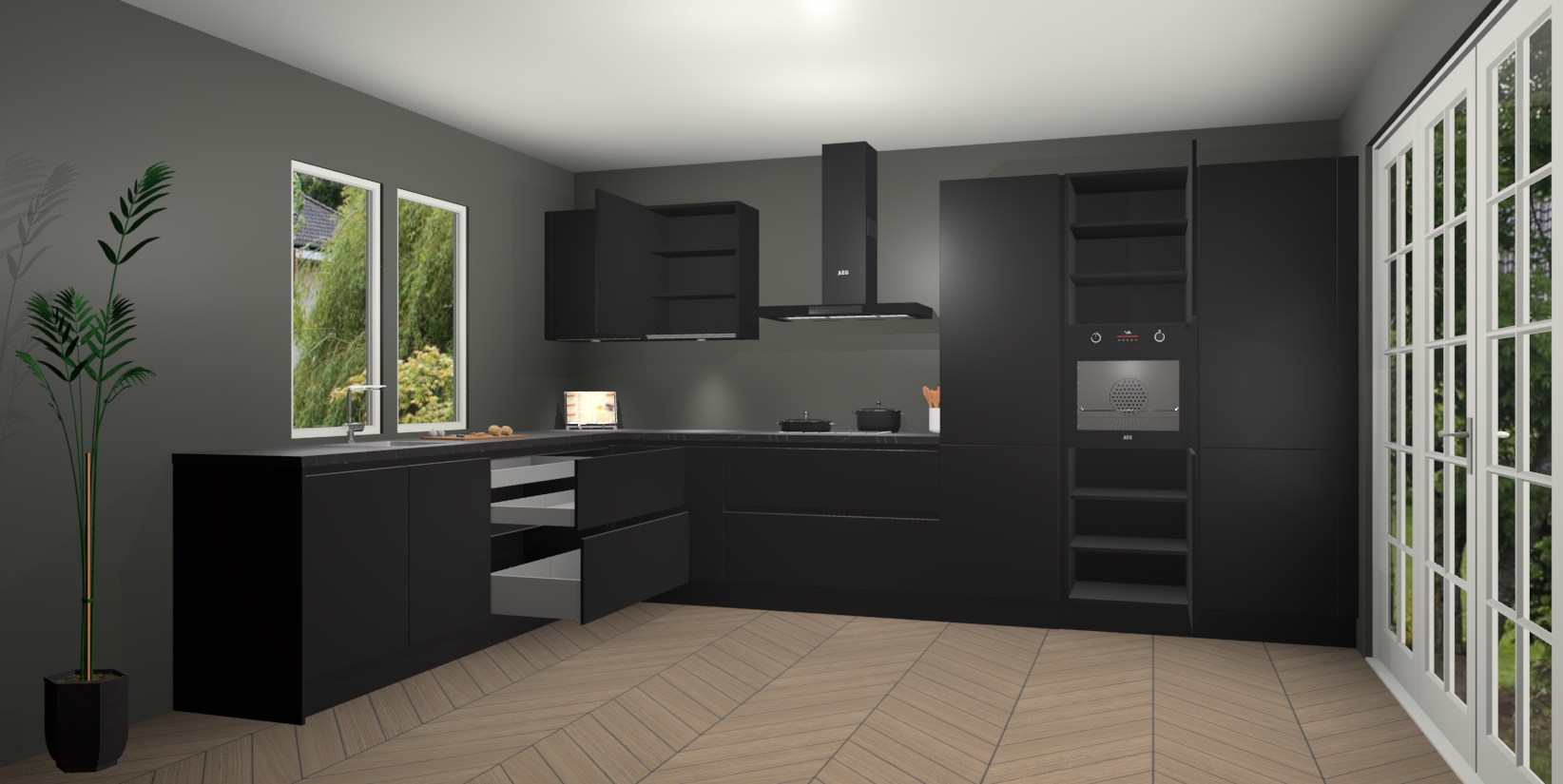 Heeft u nog apparatuur nodig? Geen probleem: de Zwarte greeploze keuken Debrecen bevat vijf ingebouwde apparaten - een oven, inductiekookplaat, afzuigkap, vaatwasser en koelkast - die gemakkelijk kunnen worden bijgewerkt naar AEG na bestelling. En als dat nog niet genoeg is; onze kasten worden pre-geassembleerd geleverd en zijn verkrijgbaar tegen een vastgeroeste lage prijs! U hoeft nooit meer te zoeken naar goede kwaliteit en service want onze producten hebben echt Duitse kwaliteit.