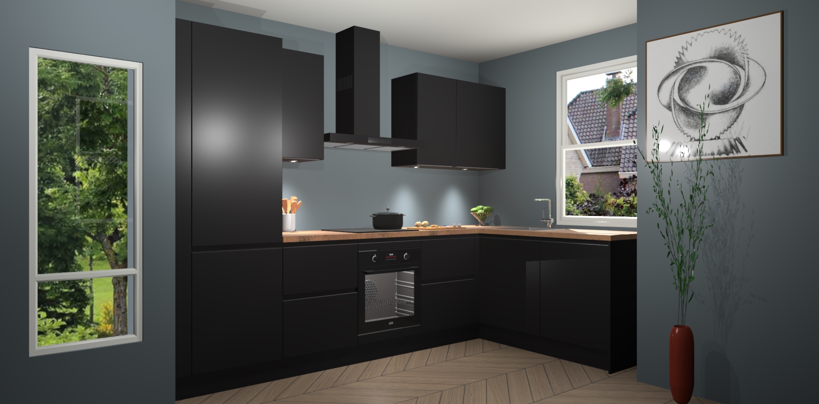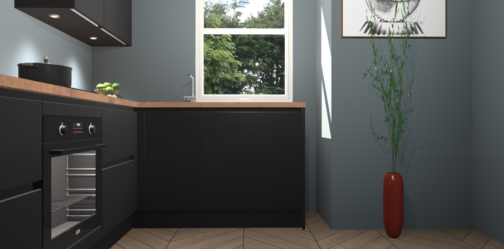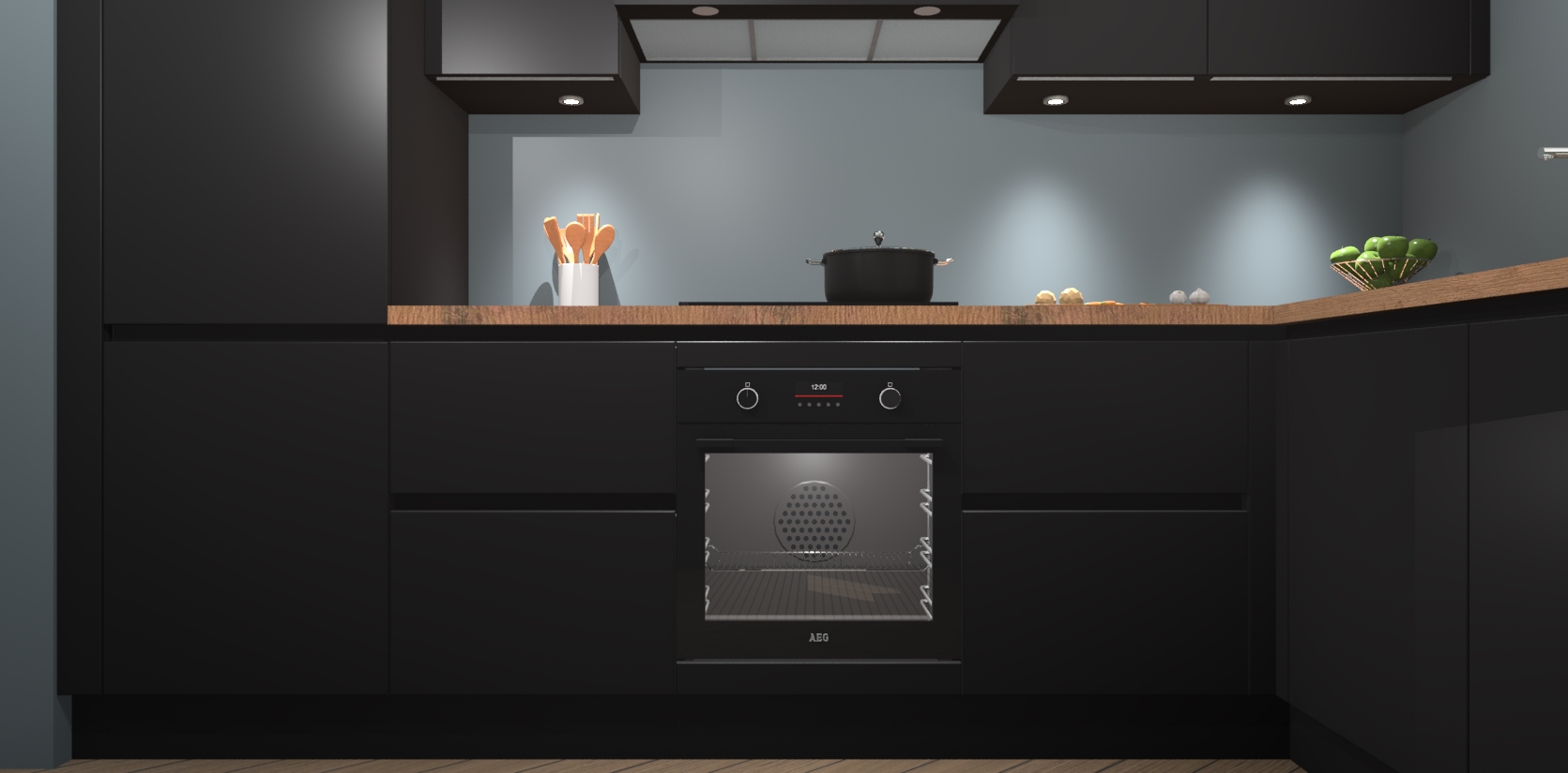 De Zwarte greeploze keuken Geneve is uitgerust met 5 inbouwapparaten - een oven, inductiekookplaat, afzuigkap, vaatwasser en koelkast - voor al uw kook- en bewaarbehoeftes. U kunt deze apparaten desgewenst eenvoudig upgraden naar AEG of de oven omruilen voor een combimagnetron na het plaatsen van uw bestelling. En met de soft close deuren, voldoende opbergruimte en kasten die voorgemonteerd worden geleverd, bent u in een mum van tijd klaar om heerlijke maaltijden te bereiden!