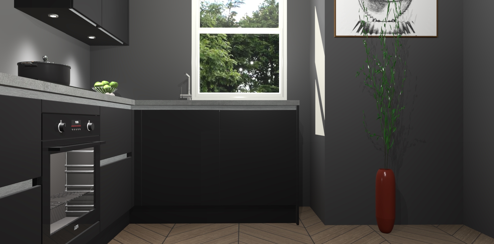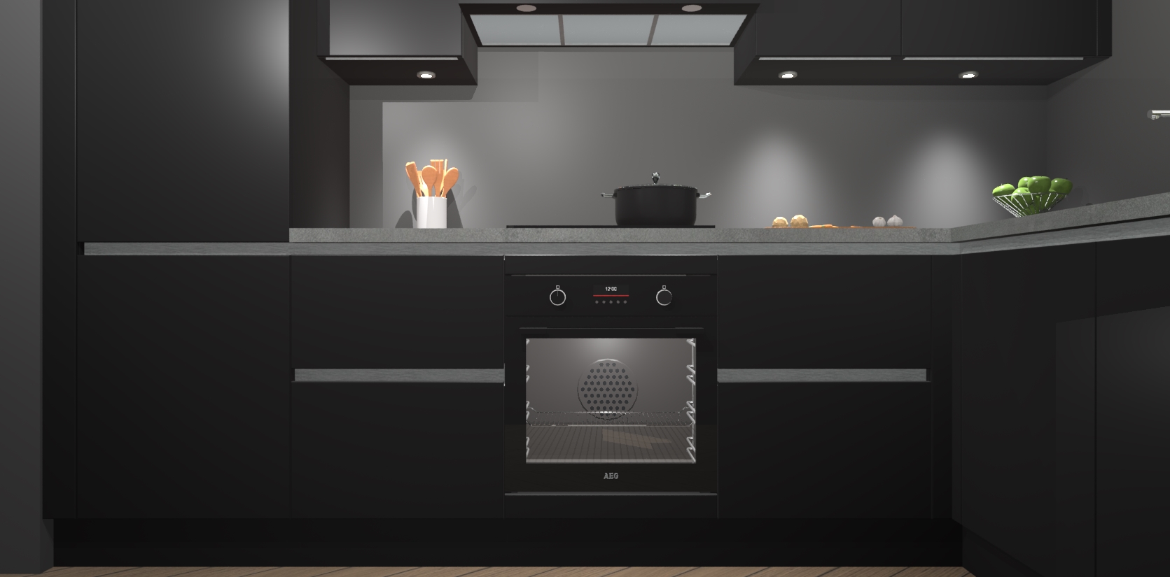 De Zwarte greeploze keuken Geneve is uitgerust met 5 inbouwapparaten - een oven, inductiekookplaat, afzuigkap, vaatwasser en koelkast - voor al uw kook- en bewaarbehoeftes. U kunt deze apparaten desgewenst eenvoudig upgraden naar AEG of de oven omruilen voor een combimagnetron na het plaatsen van uw bestelling. En met de soft close deuren, voldoende opbergruimte en kasten die voorgemonteerd worden geleverd, bent u in een mum van tijd klaar om heerlijke maaltijden te bereiden!