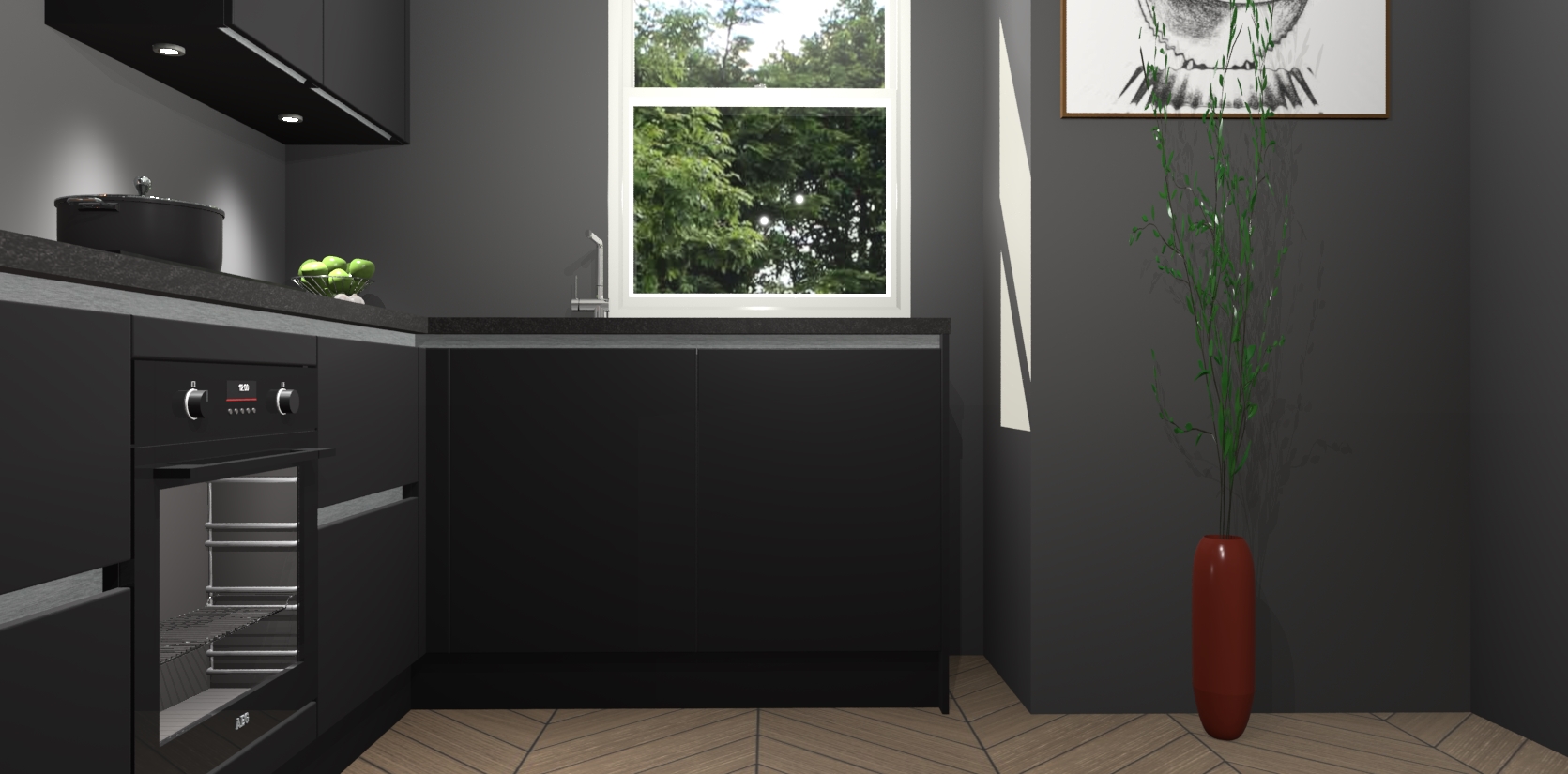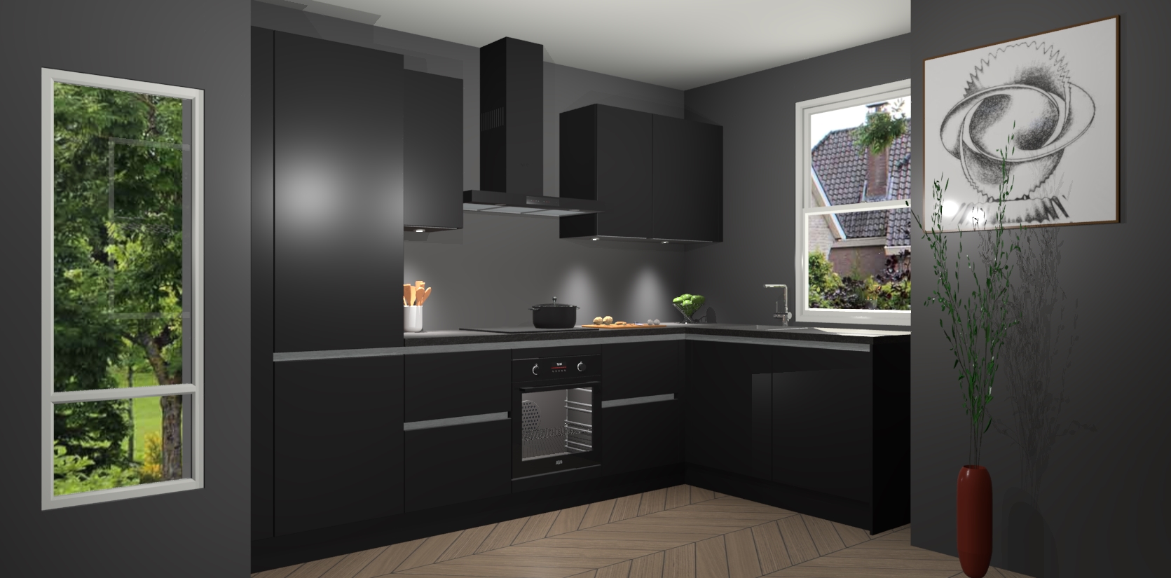 De Zwarte greeploze keuken Geneve is uitgerust met 5 inbouwapparaten - een oven, inductiekookplaat, afzuigkap, vaatwasser en koelkast - voor al uw kook- en bewaarbehoeftes. U kunt deze apparaten desgewenst eenvoudig upgraden naar AEG of de oven omruilen voor een combimagnetron na het plaatsen van uw bestelling. En met de soft close deuren, voldoende opbergruimte en kasten die voorgemonteerd worden geleverd, bent u in een mum van tijd klaar om heerlijke maaltijden te bereiden!