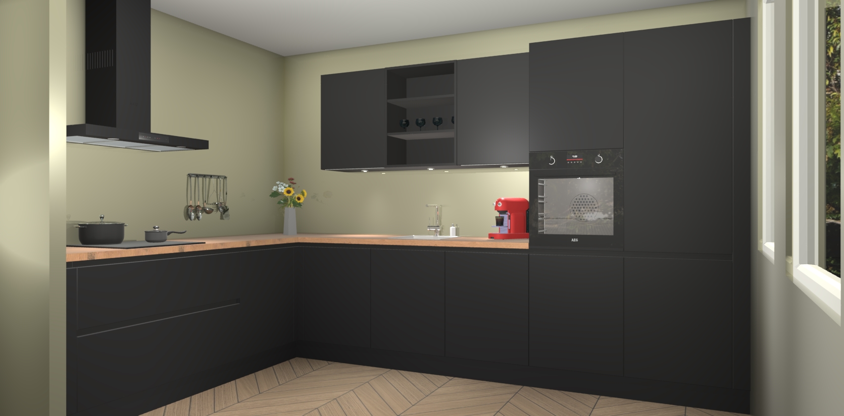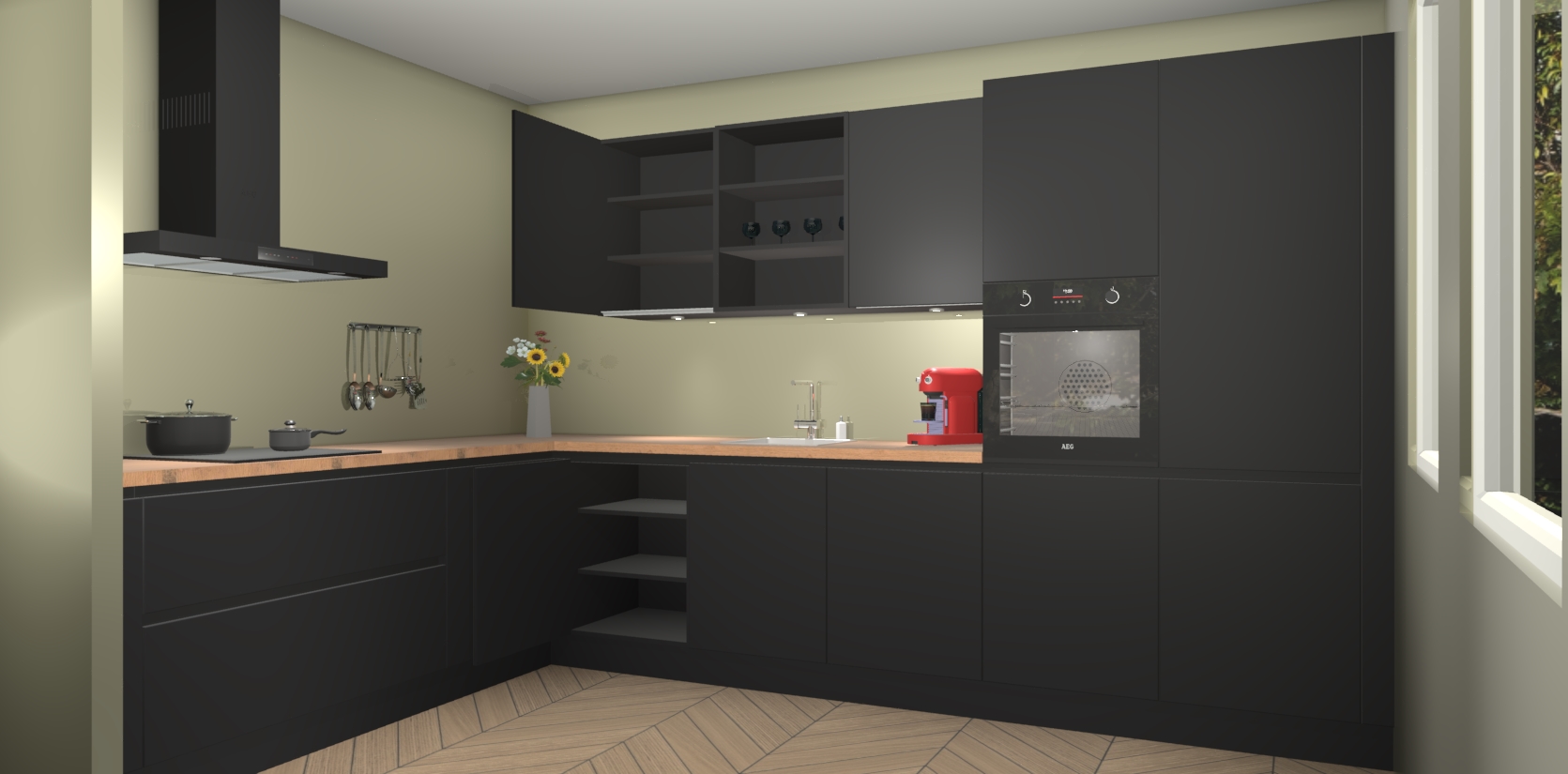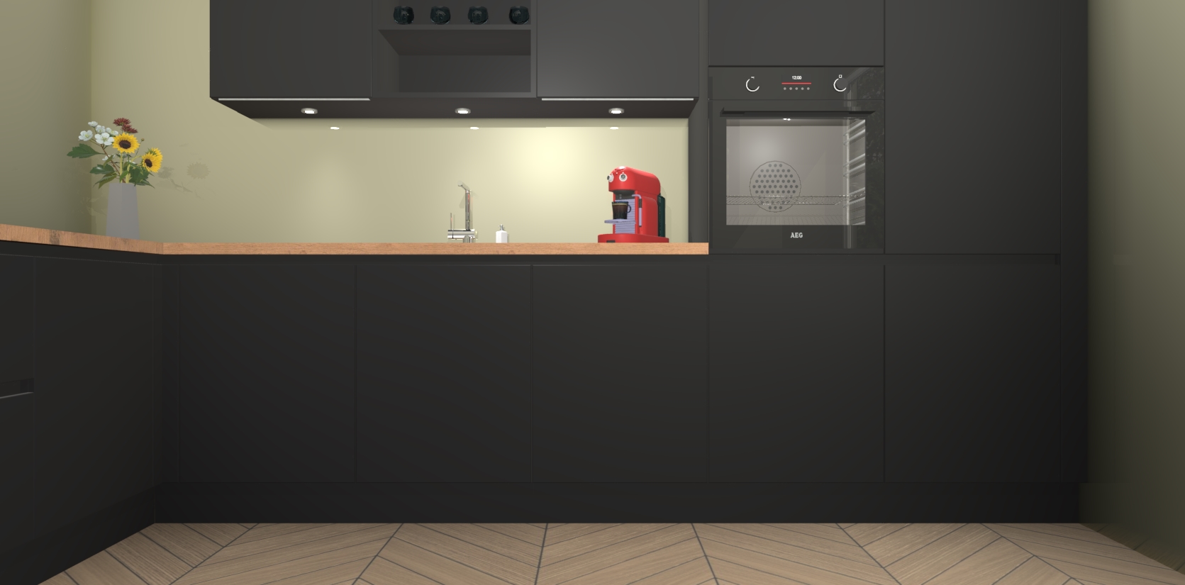 Inclusief plinten, stelpoten en werkblad